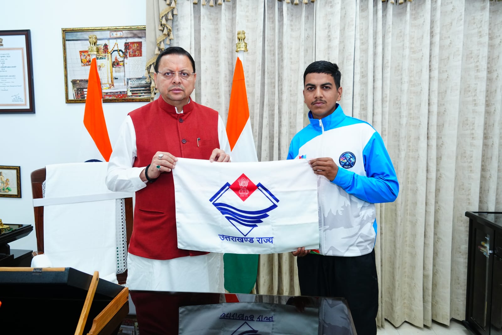 मुख्यमंत्री पुष्कर सिंह धामी से माउंट एवरेस्ट फतह करने वाले 16 वर्षीय सचिन कुमार ने की शिष्टाचार भेंट