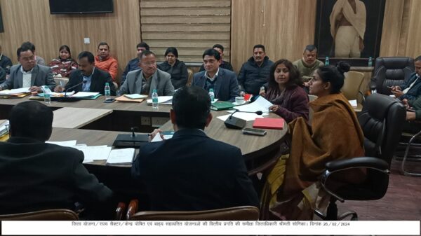 देहरादून : जिलाधिकारी सोनिका की अध्यक्षता में ऋषिपर्णा सभागार कलेक्ट्रेट में जिला योजना/राज्य सैक्टर/केन्द्र पोषित एवं बाह्य सहायतित योजनाओं की वित्तीय प्रगति की समीक्षा बैठक आयोजित की गई। जिलाधिकारी ने निर्देशित किया कि जिन विभागों की योजनाओं में व्यय प्रगति कम है ऐसे सभी विभाग व्यय प्रगति को शत प्रतिशत् करना सुनिश्चित करें।  राज्य सैक्टर की समीक्षा करते हुए उन्होंने न्यून प्रगति वाले विभागों वन, बाल विकास विभाग को नोटिस प्रेषित करने के निर्देश दिए। उन्होंने निर्देशित किया कि सभी योजनाओं में जिन विभागों की प्रगति कम है ऐसे सभी विभागों को नोटिस प्रेषित करने के निर्देश दिए। उन्होंने 20-सूत्री कार्यक्रम की समीक्षा करते हुए निर्देशित किया कि जो विभाग ए श्रेणी हैं वे ए श्रेणी में बने रहे तथा जो विभाग बी, सी, डी श्रेणी हैं वे ए श्रेणी  में आने के लिए कार्य प्रगति शत्प्रतिशत बढाने हेतु कार्य करें। माह जनवरी में जिला योजना में प्रगति 91.75 प्रतिशत्, राज्य योजना में प्रगति 78.19 प्रतिशत्, केन्द्र पोषित योजना में प्रगति 92.58 प्रतिशत्, वाह्य सहायतित योजना में प्रगति 56.74 प्रतिशत् रही।