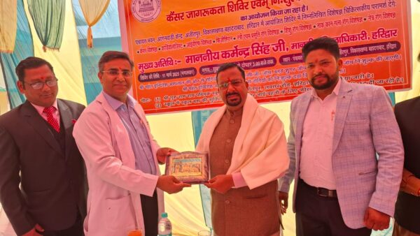 श्री महंत इन्दिरेश अस्पताल के कैंसर जागरूकता शिविर का अजीतपुरवासियों ने उठाया लाभ, डीएम कमेन्द्र सिंह ने किया कैम्प का शुभारंभ, वरिष्ठ कैंसर सर्जन डाॅ. पंकज कुमार गर्ग ने कैंसर जागरूकता पर दिया व्याख्यान