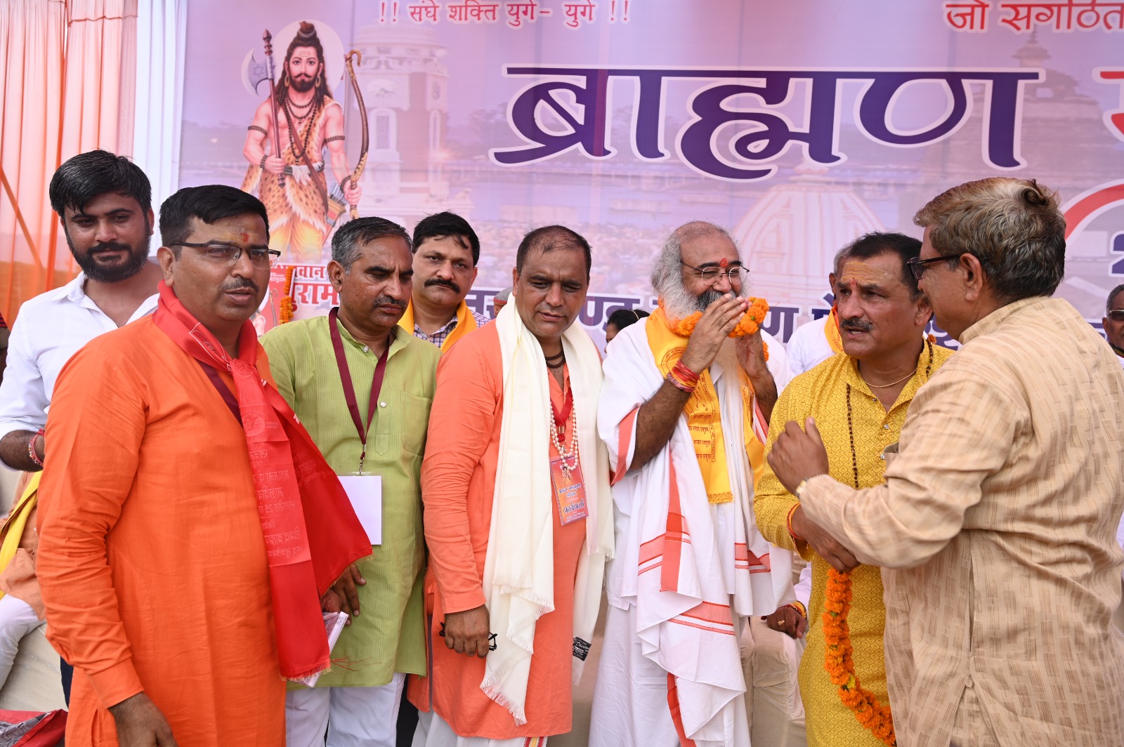 उन्होने कहा कि ब्राह्मण को वहकाया, समझाया जा सकता है लेकिन धमकाया नहीं जा सकता है। ब्राह्मण का इतिहास पौरूष, पराक्रम और त्याग से भरा पडा है। अगर ब्राह्मण जातिवादी होता तो राम की नहीं रावण की पूजा करता। उन्होंने कहा कि किसी भी राजनैतिक दल का कोई नेता सनातन पर हमला करेगा तो उसका मुंह हमको काला करना पड़ेगा। अगर आज ब्राह्मण अपना सम्मान चाहते हैं तो राजनीति में अपना स्थान बनाना पड़ेगा। नगर विधायक मदन कौशिक ने कहा कि ब्राह्मणों का योगदान भारत के विकास में हो रहा है। भारतीय संस्कृति को भी ब्राह्मण आगे बढ़ाने में योगदान कर रहा है। सतपाल ब्रह्मचारी ने कहा कि आज सोशल मीडिया में भी ब्राह्मणों का अपमान किया जा रहा है जो कि निन्दनीय है।