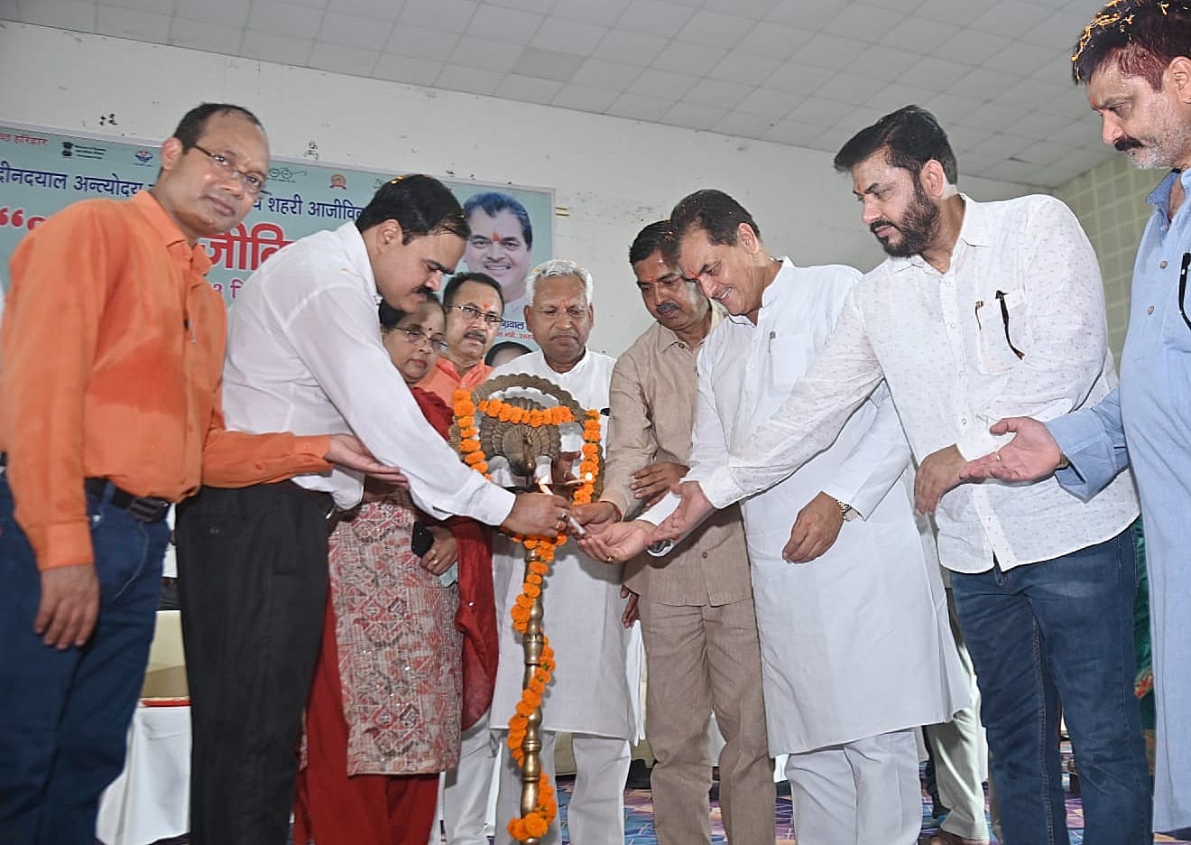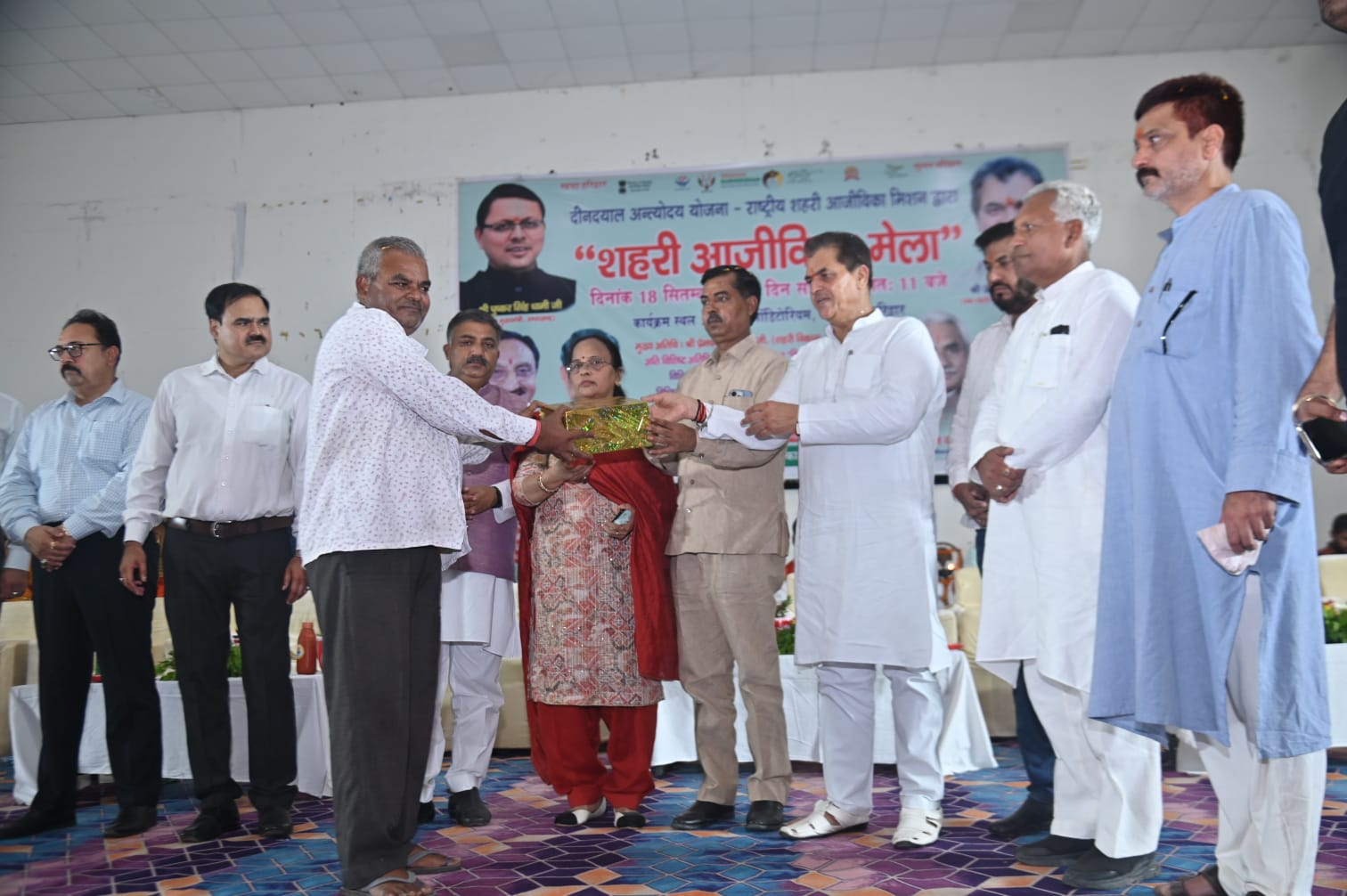 हरिद्वार : वित्त, शहरी विकास एवं आवास, विधायी एवं संसदीय कार्य, जनगणना एवं पुनर्गठन मंत्री डॉ. प्रेम चन्द्र अग्रवाल ने सोमवार को शहरी विकास विभाग द्वारा ऋषिकुल आडिटोरियम में आयोजित शहरी आजीविका मेला में मुख्य अतिथि के रूप में प्रतिभाग किया। उन्होंने इस अवसर पर नगर निगम हरिद्वार द्वारा प्रस्तावित वेडिंग जोन भगत सिंह चौक से सेक्टर 2 बेरियर तक एवं नगर निगम हरिद्वार क्षेत्रान्तर्गत 60 वार्डो में विभिन्न निर्माण कार्यो ,जिनकी लागत 7.50 करोड़ है, का शिलान्यास करने के साथ ही मुख्यमंत्री महिला उद्यमिता योजना के अन्तर्गत महिलाओं हेतु रोड़ी बेलवाला में विकसित पिंक वेंडिंग जोन, नगर निगम हरिद्वार द्वारा विकसित वेंडिंग जोन कोतवाली ज्वालापुर से जटवाड़ा पुल तक तथा नगर निगम हरिद्वार द्वारा विकसित वेंडिंग जोन ललतारौ पुल से चण्डी चौक तक का मंत्रोच्चारण के बीच लोकापर्ण किया।