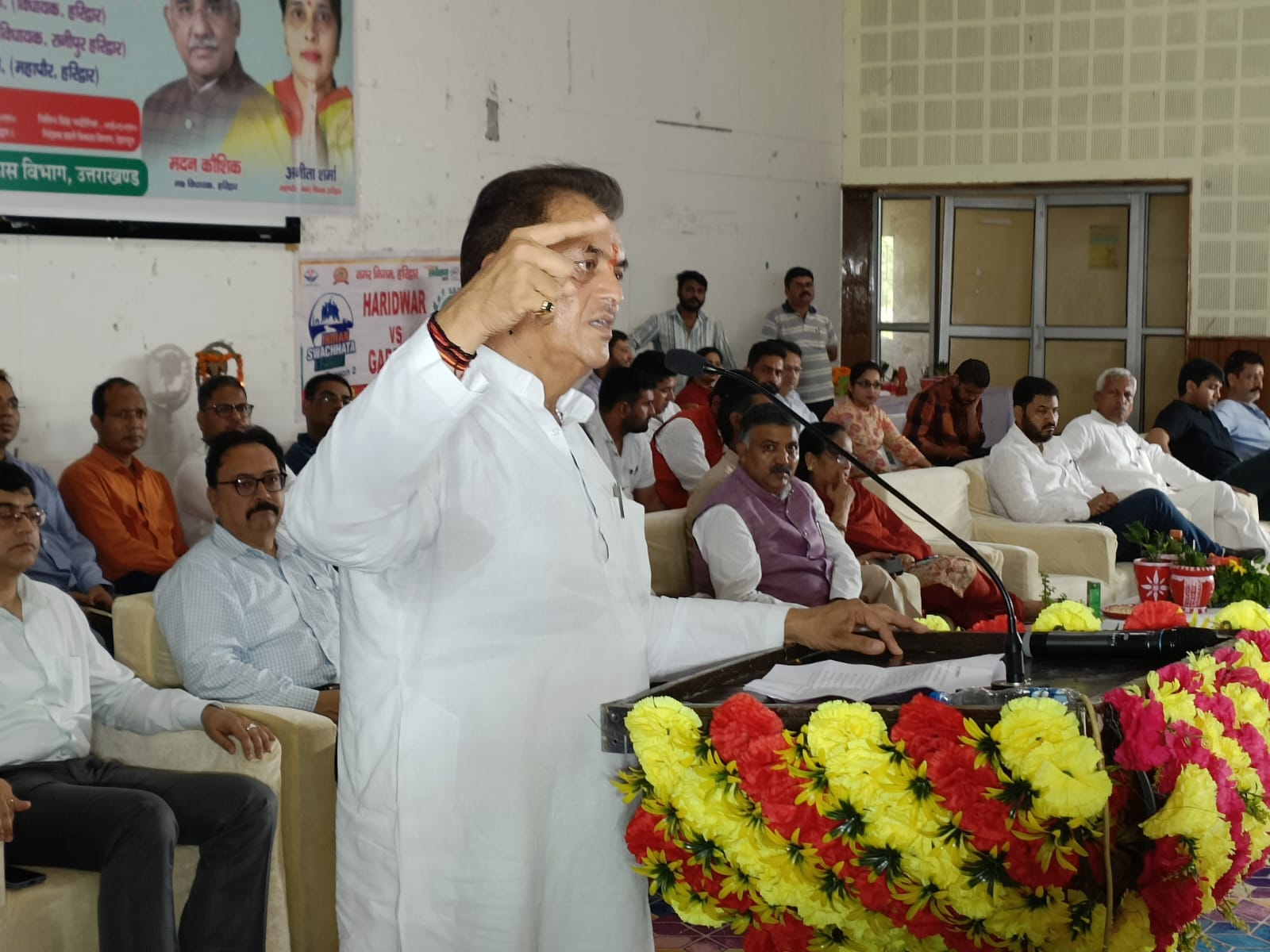 ऋषिकुल आडिटोरियम परिसर पहुंचने पर शहरी विकास मंत्री डॉ. प्रेम चन्द्र अग्रवाल का पुष्पगुच्छ, प्रतीक चिह्न भेंटकर भव्य स्वागत व अभिनन्दन किया गया। मंच का सफल संचालन रेडक्रास सचिव डॉ. नरेश चौधरी ने किया। इस अवसर पर हरिद्वार नगर विधायक मदन कौशिक, रानीपुर विधायक आदेश चौहान, मेयर नगर निगम हरिद्वार अनिता शर्मा, प्रथम महापौर मनोज गर्ग, शिवालिक नगरपालिका अध्यक्ष राजीव शर्मा, अमरीष गर्ग, लघु व्यापार एसोसिएशन के प्रान्तीय अध्यक्ष संजय चोपड़ा, ग्रीन मैन विजय पाल बघेल, अपर जिलाधिकारी(प्रशासन) पी.एल. शाह, शहरी विकास के अपर निदेशक अशोक पाण्डे, नगर आयुक्त नगर निगम हरिद्वार दयानंद सरस्वती, एमएनए रूडक़ी विजयनाथ शुक्ल, लीड बैंक मैनेजर संजय सन्त सहित सम्बन्धित पदाधिकारी एवं अधिकारीगण उपस्थित थे।