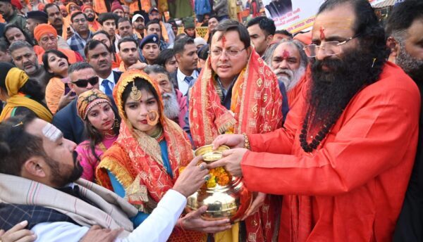 मुख्यमंत्री पुष्कर सिंह धामी ने मां गंगा का पवित्र जल ब्रह्मकुण्ड से कलशों में एकत्रित कर कलश यात्रा को अयोध्या के लिये किया रवाना