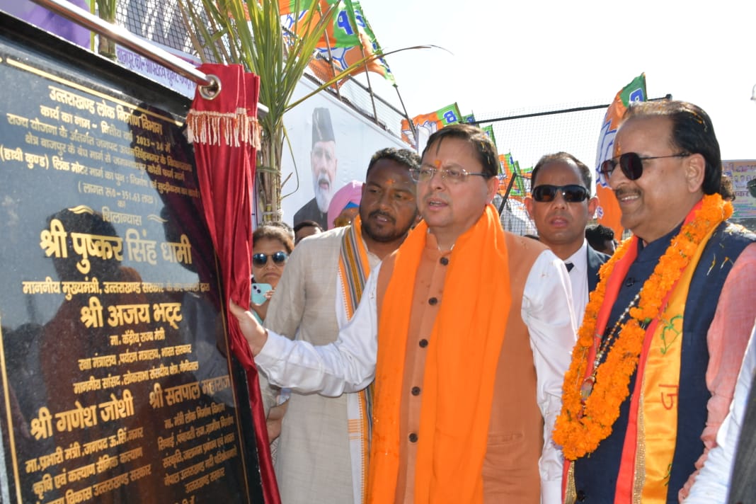 केंद्रीय रक्षा एवं पर्यटन राज्यमंत्री अजय भट्ट ने मुख्यमंत्री धामी का स्वागत करते हुए कहा मुख्यमंत्री के नेतृत्व में हमारा प्रदेश देश में अपनी विशिष्ट पहचान बना रहा है। उन्होंने कहा कि सांसद होने के नाते मैने संसद में जमरानी बांध का मुद्दा उठाया, जिसमें मुख्यमंत्री जी ने अपना सहयोग देकर इस मुद्दे को सुलझाने में बहुत बड़ा योगदान दिया है जिससे अब आने वाले 50 वर्षों तक तराई में बिजली एवं पानी की समस्या नहीं होगी। मुख्यमंत्री जी ने मेरे कहने पर लालकुआं से अमृतसर तक और टनकपुर से देहरादून तक रेल सेवा के लिए अपना विशेष योगदान देकर जनता की समस्याओं का निस्तारण किया। इस दौरान राज्यसभा सांसद महेन्द्र भट्ट, विधायक अरविंद पाण्डे, जिलाध्यक्ष गुँजन सुखीजा ने भी अपने विचार रखें। कार्यक्रम में विधायक त्रिलोक सिंह चीमा, अरविंद पाण्डे, अध्यक्ष अनुसूचित जाति आयोग मुकेश कुमार, दर्जा राज्यमंत्री अनिल कपूर(डब्बू), प्रदेश मंत्री भाजपा विकास शर्मा, राम मेहरोत्रा,अध्यक्ष किच्छा मण्डी कमलेन्द्र सेमवा, जिलाध्यक्ष गुँजन सुखीजा, निवर्तमान मेयर काशीपुर ऊषा चौधरी, जिलाधिकारी उदय राज सिंह, एसएसपी मंजुनाथ टीसी सहित अन्य अधिकारी एवं स्थानीय जनता उपस्थित थी।
