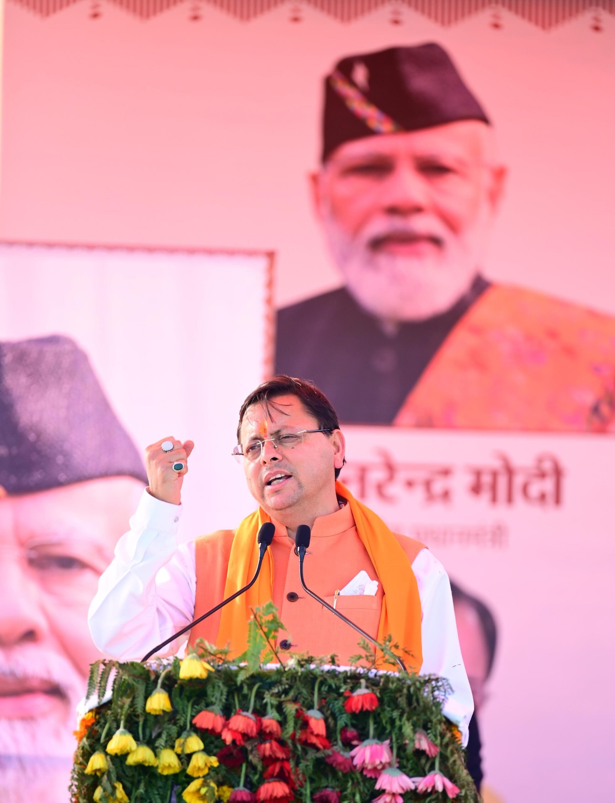 मुख्यमंत्री पुष्कर सिंह धामी बाजपुर (ऊधमसिंह नगर) में आयोजित रोड शो में हुए शामिल