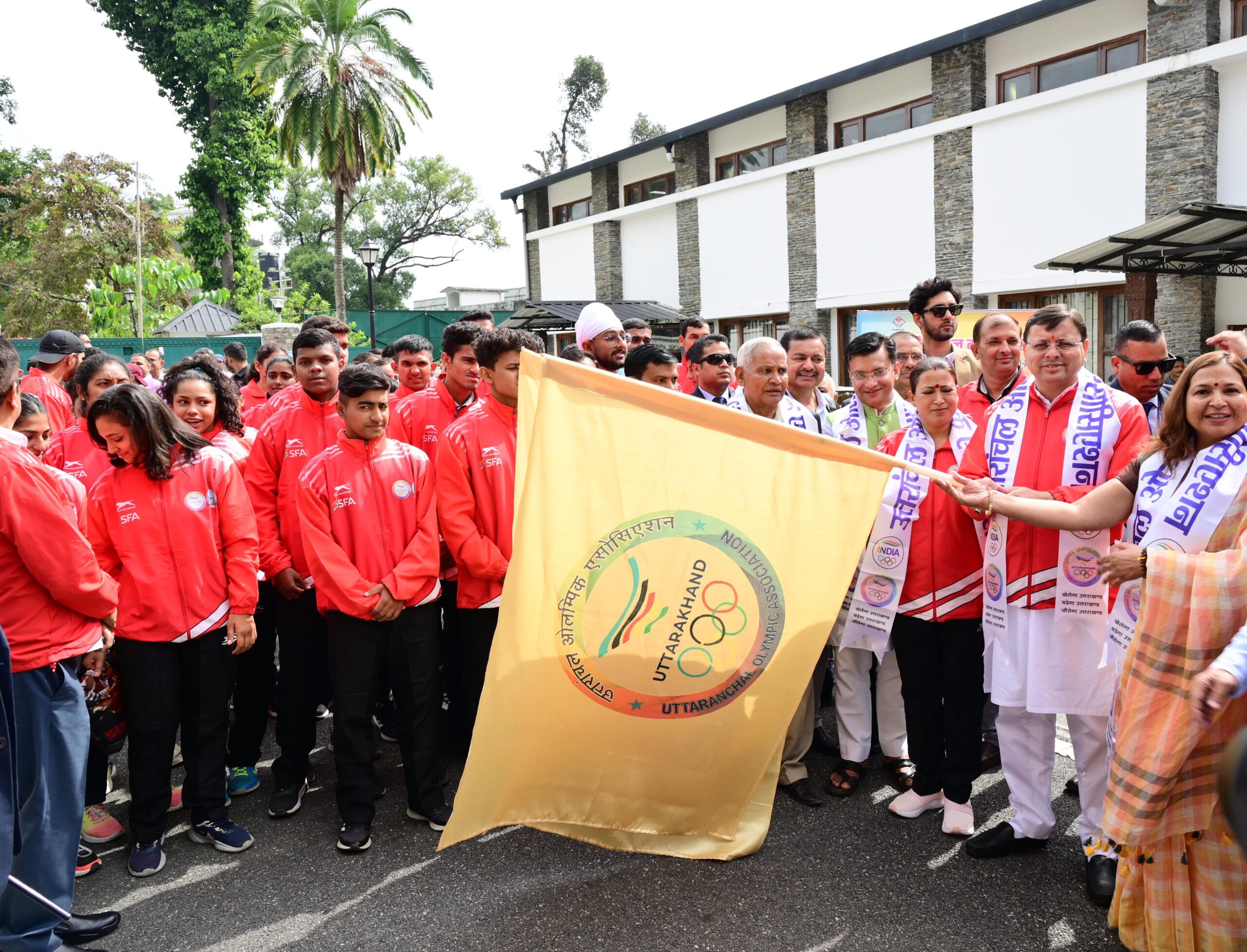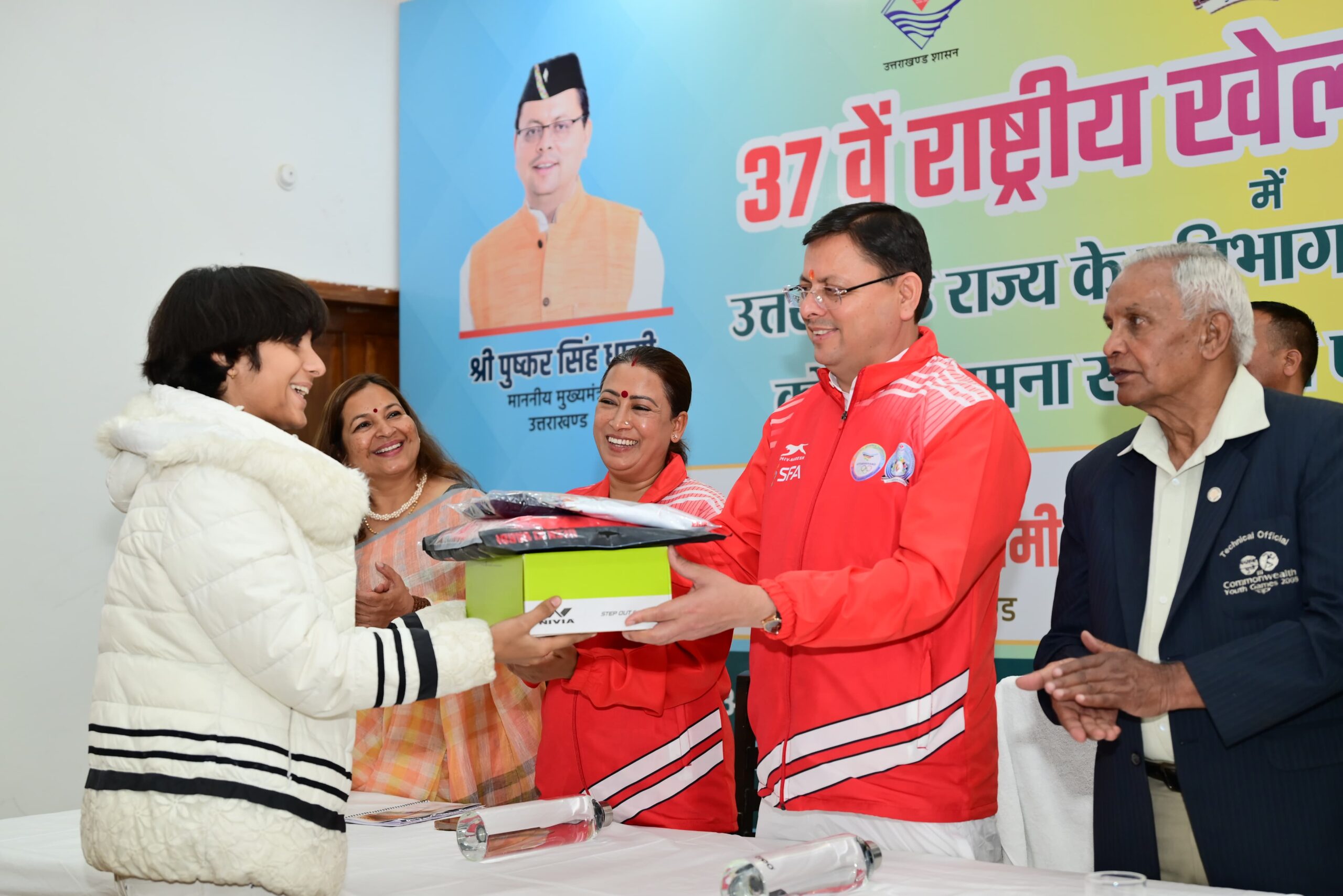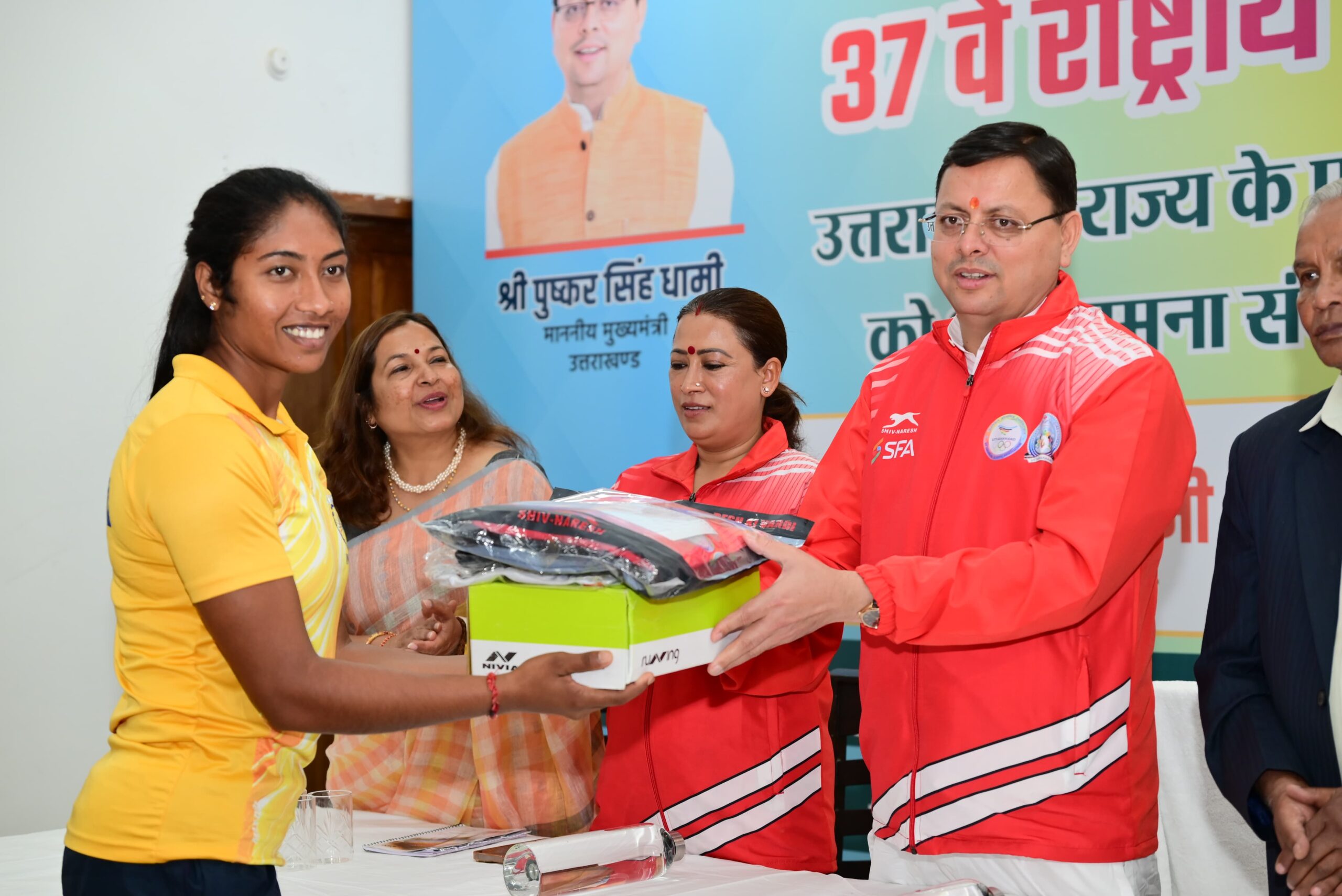 मुख्यमंत्री पुष्कर सिंह धामी ने 37वें राष्ट्रीय खेल में राज्य की ओर से प्रतिभाग करने वाले खिलाड़ियों के दल को फ्लैग ऑफ कर किया रवाना
