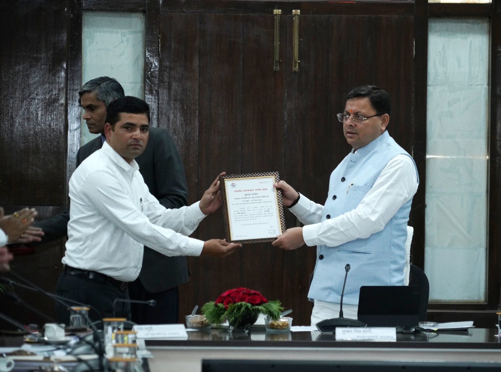 इस अवसर पर अपर मुख्य सचिव राधा रतूड़ी, आनन्द बर्द्धन, प्रमुख सचिव आर. के. सुधांशु, एल फैनई, डीजीपी अशोक कुमार, एडीजी पी.वी.के प्रसाद, निदेशक विजिलेंस वी. मुरूगेशन, एडीजी अमित सिन्हा, ए. पी अंशुमान एवं शासन के वरिष्ठ अधिकारी और विजिलेंस के अधिकारी उपस्थित थे।