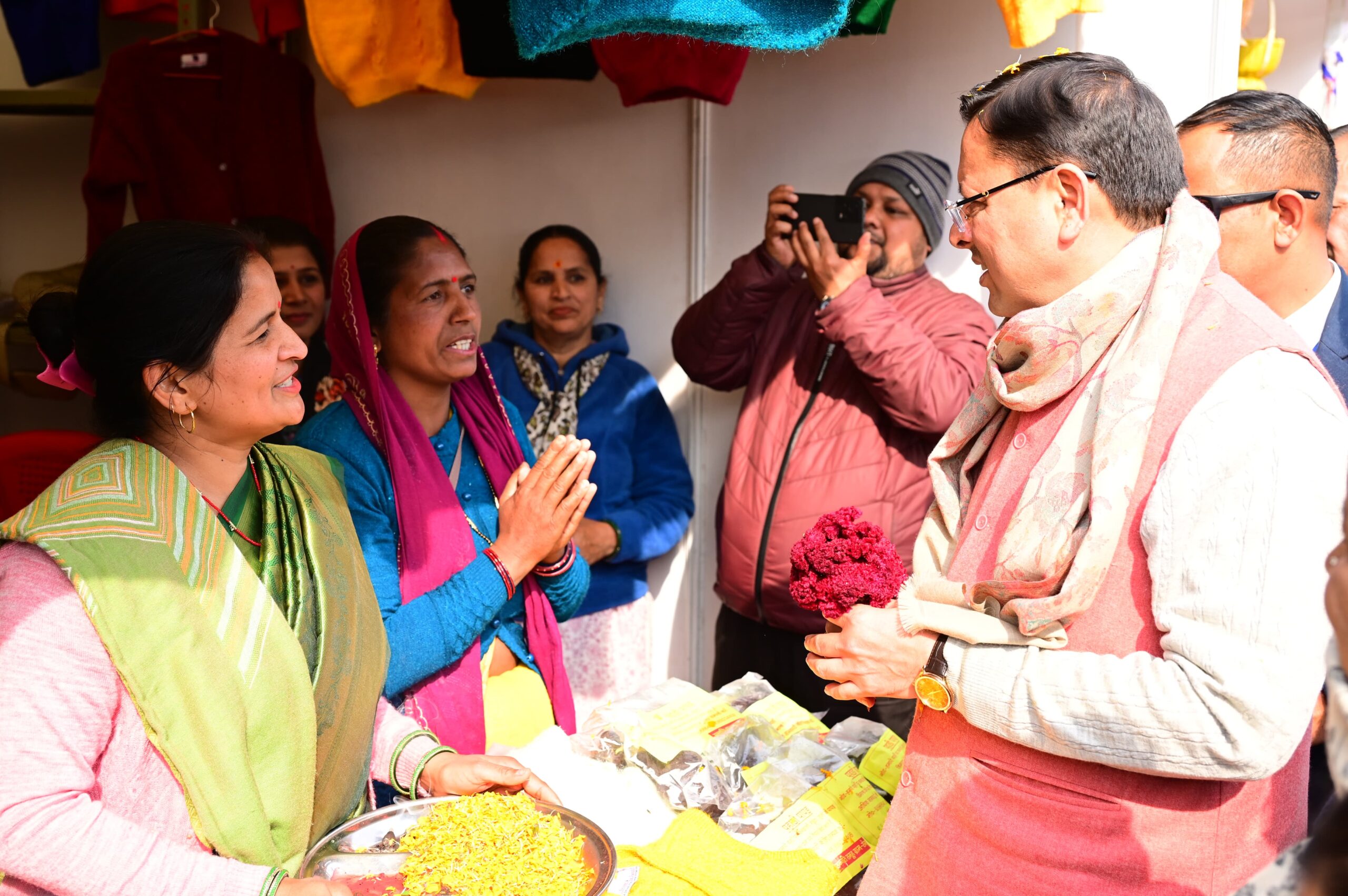 रूरल बिजनेस इंक्यूबेटर की ओर से लगे स्टॉल पर शिल्पकार के उद्यमियों एवं स्वास्तिक स्वयं सहायता की महिलाओं के साथ मिलकर मुख्यमंत्री धामी ने स्टोन पेन्टिंग करते हुए उनकी संस्था की जानकारी ली। वहीं उन्नती क्लस्टर संगठन, कालीमठ कोटमा की महिलाओं के स्टॉल पर कताई एवं बुनाई की। संगठन की अध्यक्ष सरिता देवी ने उन्हें हाथकरघा की पूरी विधि बताते हुए अपने संगठन की जानकारी दी। उन्होंने समूह के उत्पादों की सराहना करते हुए श्री केदारनाथ धाम एवं यात्रा मार्ग पर भी आउटलेट खोलने एवं पारंपरिक तरीके से बन रहे दोखे, शौल, टोपी आदि का खूब प्रचार करने को कहा।