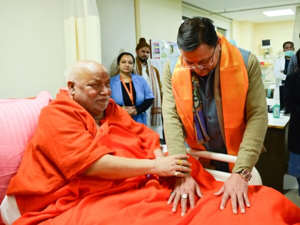 मुख्यमंत्री पुष्कर सिंह धामी ने सिनर्जी अस्पताल में भर्ती जगदगुरू रामभद्राचार्य महाराज से भेंट कर पूछी कुशल क्षेम