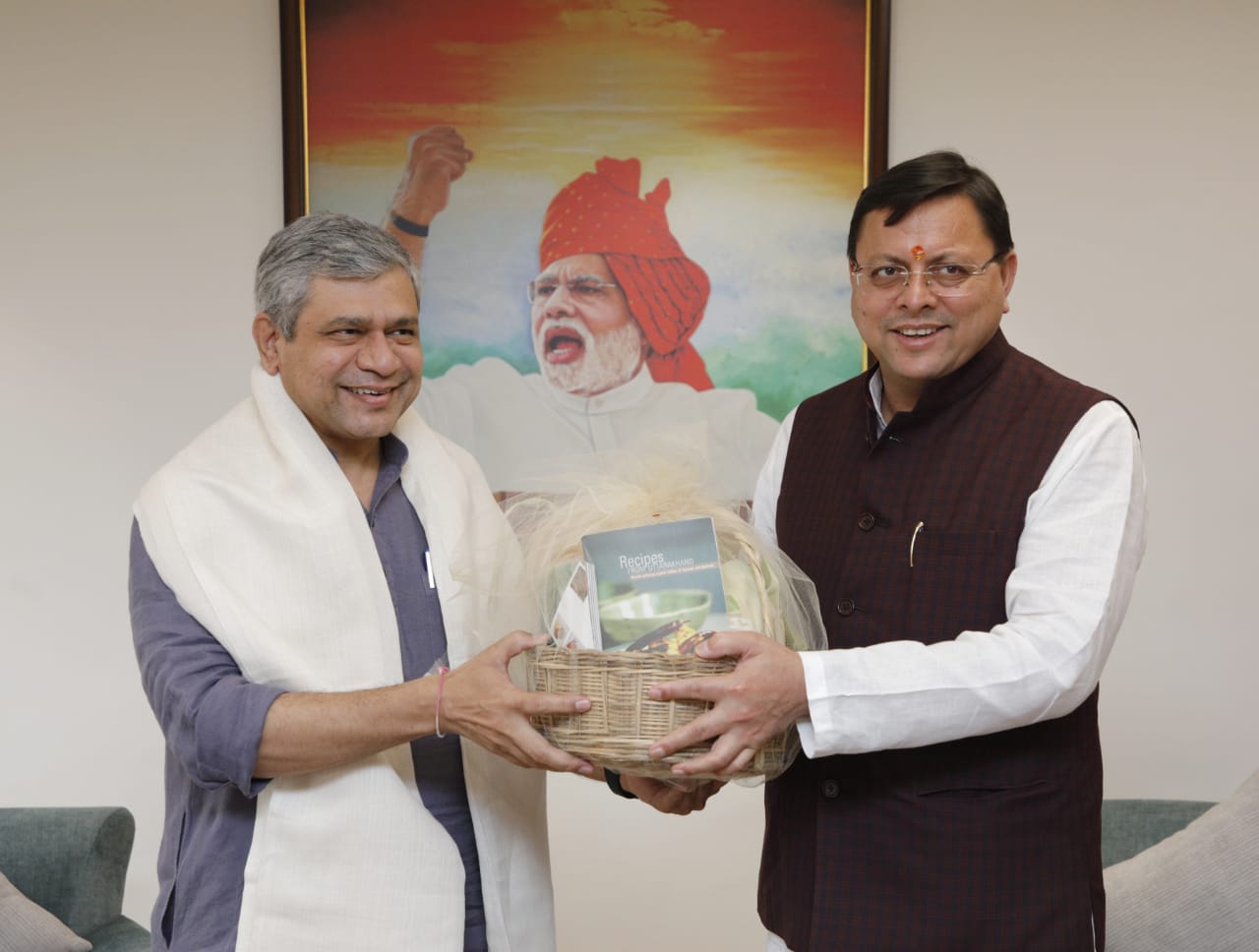 मुख्यमंत्री पुष्कर सिंह धामी ने केंद्रीय रेल मंत्री अश्विनी वैष्णव से की भेंट, प्रदेश में सुदृढ़ रेल कनेक्टिविटी के सम्बन्ध में की विस्तार से चर्चा