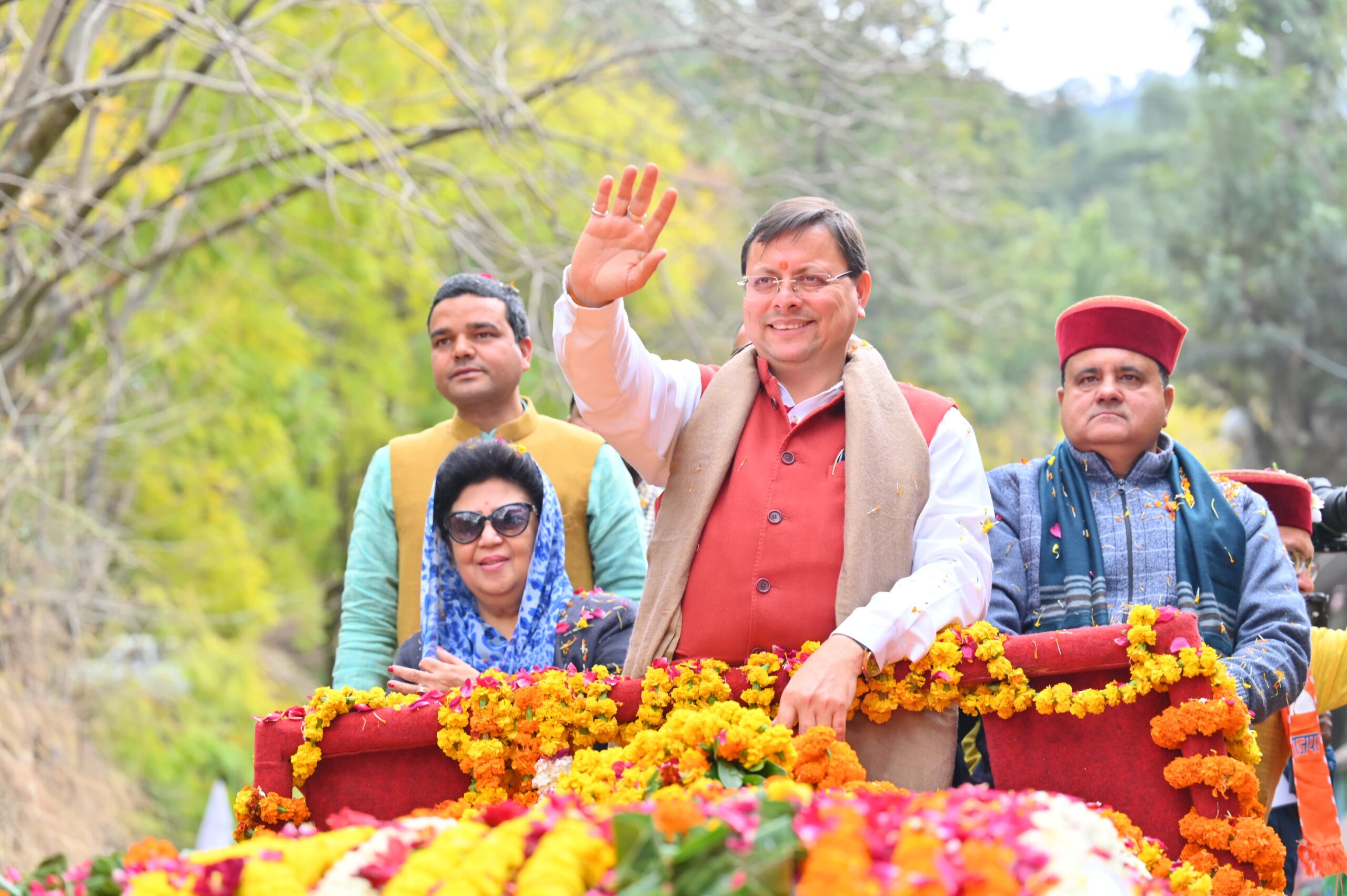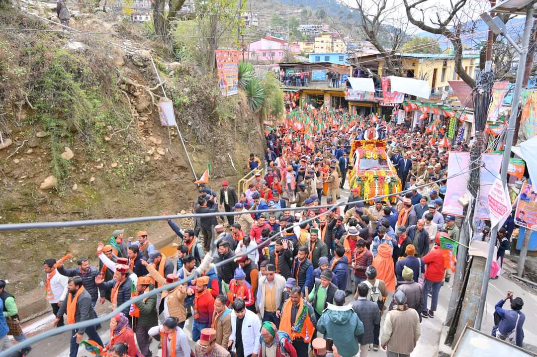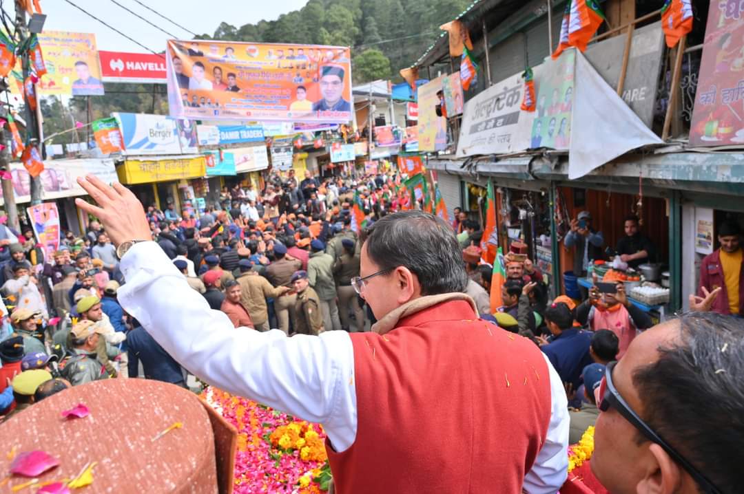 मुख्यमंत्री पुष्कर सिंह धामी ने बड़कोट में आयोजित रोड शो में किया प्रतिभाग, लोगों ने पुष्प वर्षा कर किया भव्य स्वागत