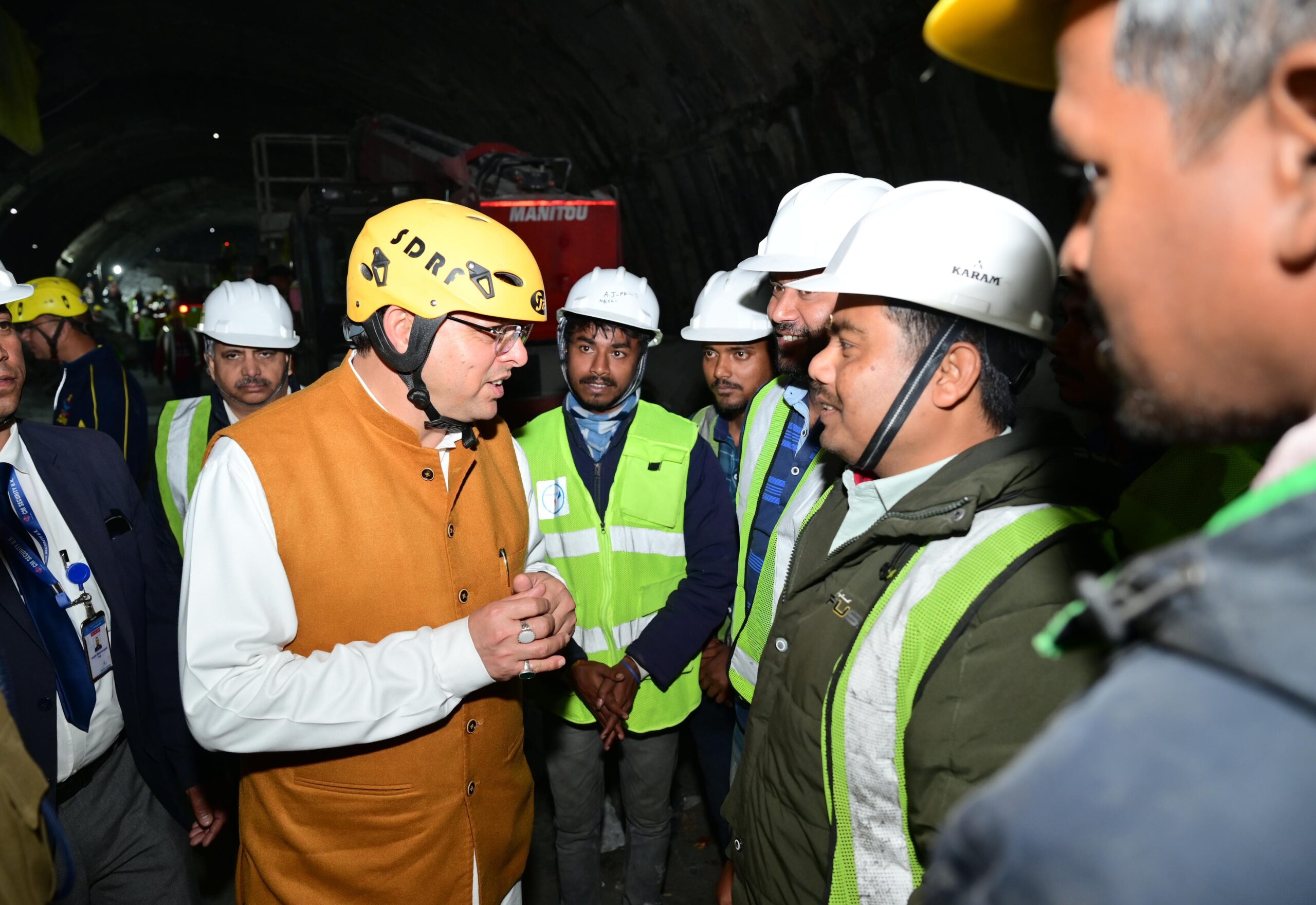 मुख्यमंत्री पुष्कर सिंह धामी ने रेस्क्यू ऑपरेशन में रात दिन जुटे श्रमिकों से भी बात कर उनकी पीठ थपथपाई। उन्होंने कहा आप सभी की मेहनत से रेस्क्यू कार्य सफलता की ओर बढ़ रहा है। उन्होंने कहा टनल में फंसी बहुमूल्य जिंदगियों को बचाने में श्रमिकों का योगदान हमेशा याद रखा जाएगा। उन्होंने कहा रेस्क्यू ऑपरेशन में रात दिन जुटे श्रमिकों को किसी तरह की दिक्कत ना हो इसका भी विशेष ध्यान रखा गया है। इस मौके पर मुख्यमंत्री ने ड्रिलिंग के दौरान पाइप के मुहाने पर फंसे धातु के टुकड़ों को पाइप के अंदर रेंगकर काटने के अत्यंत दुष्कर कार्य को सफलता पूर्वक अंजाम देने वाले श्रमिक प्रदीप यादव एवं बलविंदर की भी सराहना की।