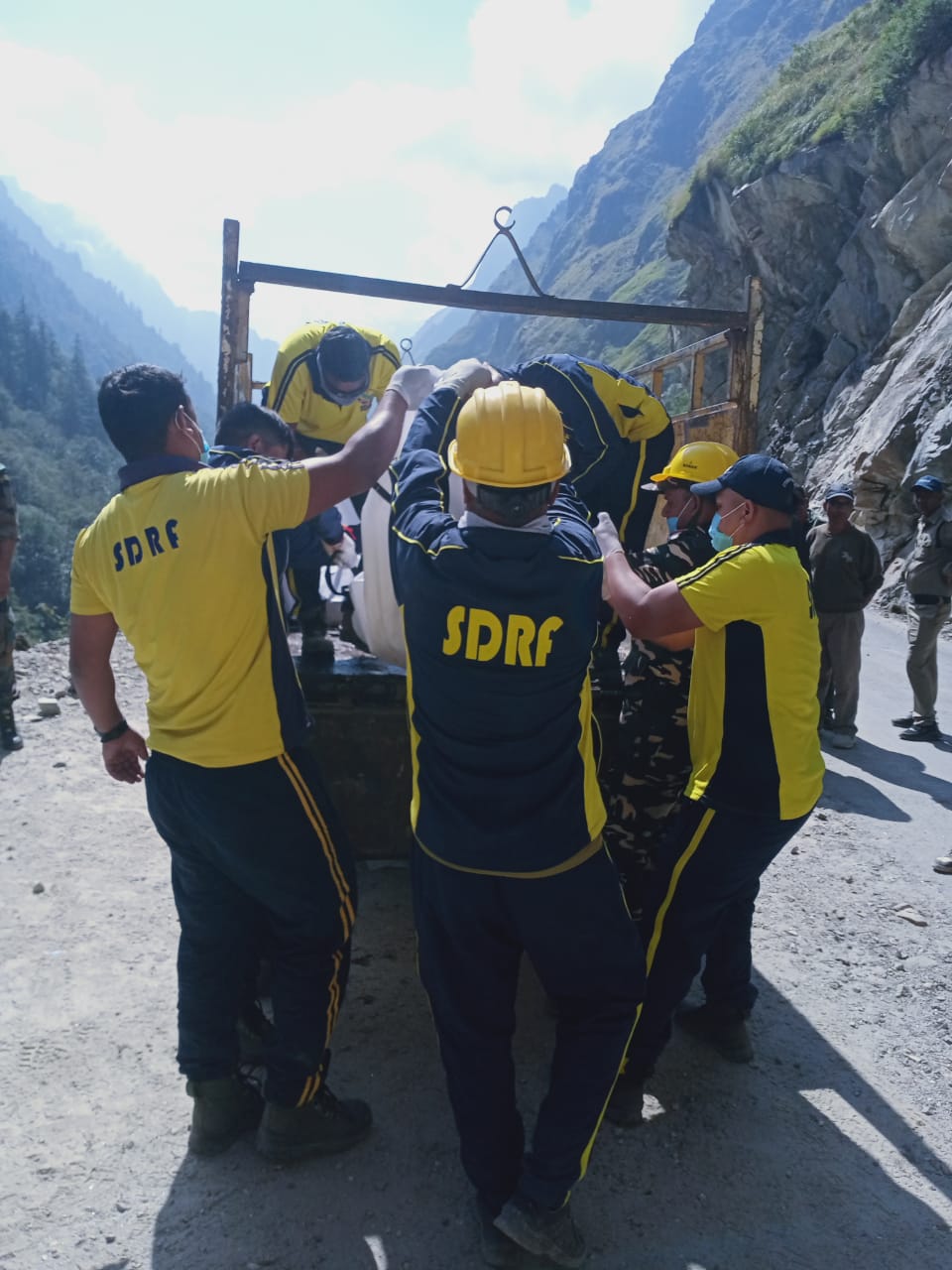 पिथौरागढ़ : जनपद पिथौरागढ़ के धारचूला-गूंजी मोटर मार्ग पर वाहन पर गिरा मलबा, SDRF ने चलाया रेस्क्यू अभियान। 08 अक्टूबर 2023 को जिला नियंत्रण कक्ष द्वारा SDRF को सूचित किया गया था कि धारचूला- गूंजी मोटरमार्ग पर थक्ति झरने के पास एक वाहन पर पहाड़ से मलबा गिर गया है जिसमें 09 सवारों के दबे होने की संभावना जताई गई। उक्त सूचना पर SDRF रेस्क्यू टीम द्वारा त्वरित कार्यवाही करते हुए घटनास्थल पर पहुँचकर रेस्क्यू अभियान चलाया गया। रात्रि हो जाने व पहाड़ से लगातार गिर रहे मलबे के कारण संभावित खतरे को देखते हुए रेस्क्यू ऑपरेशन को विराम देना पड़ा। आज 09 अक्टूबर को पुनः प्रातः से ही SDRF रेस्क्यू टीम द्वारा अन्य बचाव इकाईयों के साथ समन्वय स्थापित कर सर्च एंड रेस्क्यू ऑपरेशन चलाया गया। उक्त वाहन (UK05 CA 3803) में कुल 07 लोग सवार थे। SDRF टीम द्वारा जेसीबी द्वारा मलबा हटाये जाने के उपरांत रेस्क्यू उपकरणों का प्रयोग करते हुए वाहन के अंदर फंसे 07 लोगों के शवों को बाहर निकालकर जिला पुलिस के सुपर्द किया गया।