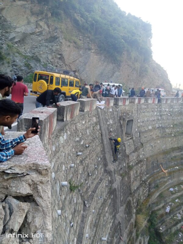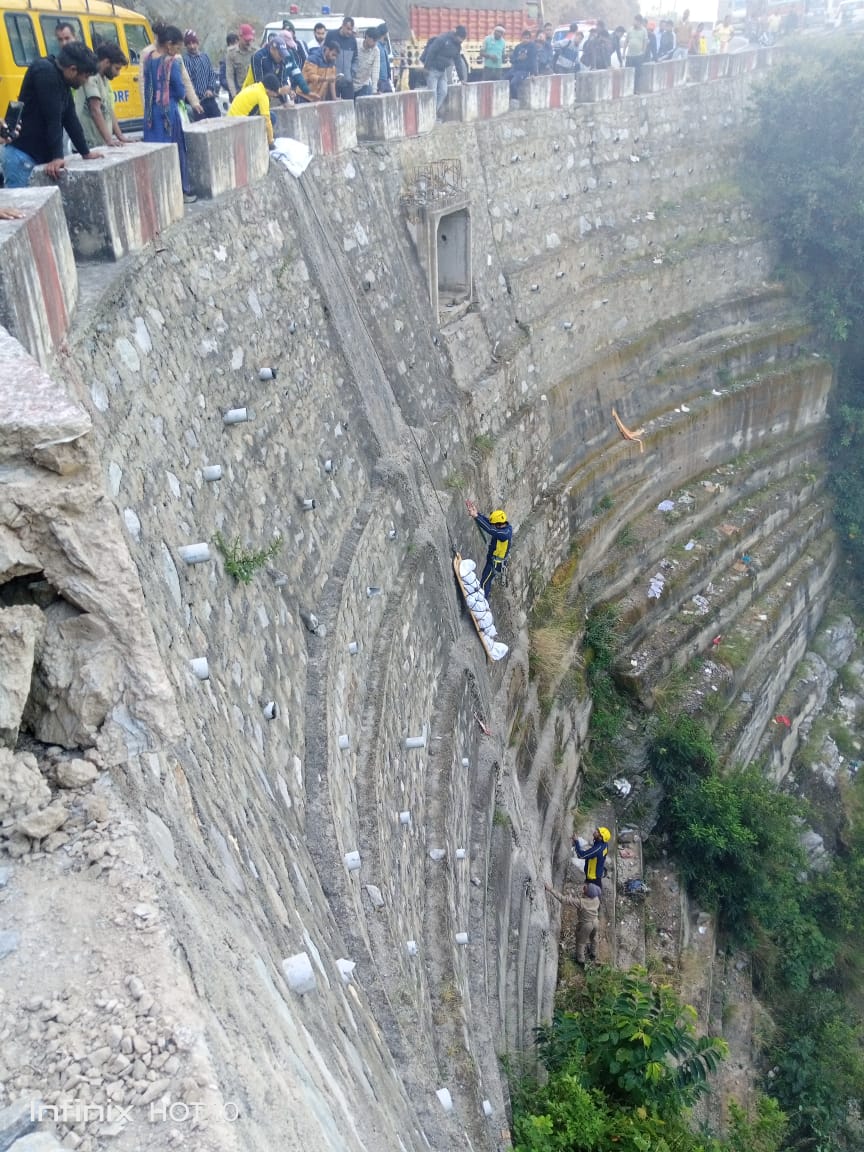 देवप्रयाग : जनपद टिहरी के देवप्रयाग क्षेत्र में एक ट्रक हुआ दुर्घटनाग्रस्त, SDRF ने बरामद किया चालक का शव। आज 19 अक्टूबर 2023 को जिला नियन्त्रण कक्ष, टिहरी गढ़वाल द्वारा SDRF को सूचित किया गया कि देवप्रयाग में एक ट्रक गहरी खाई में दुर्घटनाग्रस्त हो गया है। उक्त सूचना मिलते ही पोस्ट ब्यासी से HC जितेंद्र सिंह नेगी के हमराह SDRF रेस्क्यू टीम तत्काल घटनास्थल के लिए रवाना हुई। घटनास्थल पर एक ट्रक (GJ 27 TD -4402) अनियंत्रित होने से लगभग 100 मीटर गहरी खाई में दुर्घटनाग्रस्त हुआ था जिसमें केवल चालक ही सवार था जिसकी घटनास्थल पर ही मृत्यु हो गयी थी। SDRF टीम द्वारा मौके पर पहुँचकर खाई में उतरकर शव तक पहुँच बनाई व कड़ी मशक्कत करते हुए रोप स्ट्रैचर व बॉडी बैग के माध्यम से मुख्य मार्ग तक पहुँचाकर जिला पुलिस के सुपर्द किया गया।