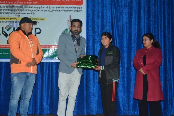 जिला निर्वाचन अधिकारी ने 14वें राष्ट्रीय मतदाता दिवस के अवसर पर सर्वप्रथम दीप प्रज्वलित कर कार्यक्रम का शुभारंभ किया। उन्होंने मतदात दिवस की शपथ दिलाते हुए लोकतंत्र को मजबूत करने के लिए आगामी लोकसभा निर्वाचन में सभी से अपने मतदान का प्रयोग करने की अपील की। उन्होंने कहा कि भारत एक लोकतांत्रित देश है जहां 18 साल की उम्र के हर नागरिक को बिना किसी भेदभाव या दबाव के अपनी पसंद का नेता चुनने का अधिकार है। लोकतांत्रिक समाज व शासन की स्थापना के लिए आवश्यक है कि प्रत्येक नागरिक को बिना किसी भेदभाव के मत का अधिकार हासिल हो। उन्होंने कहा कि मतदान किसी भी मतदाता का अधिकार है जिसके महत्व को समझना बेहद जरूरी है। उन्होंने कहा कि युवाओं को चुनावी प्रक्रिया में मतदान में भाग लेने के लिए प्रोत्साहित करने के लिए ही हर साल 25 जनवरी को राष्ट्रीय मतदाता दिवस मनाया जाता है।