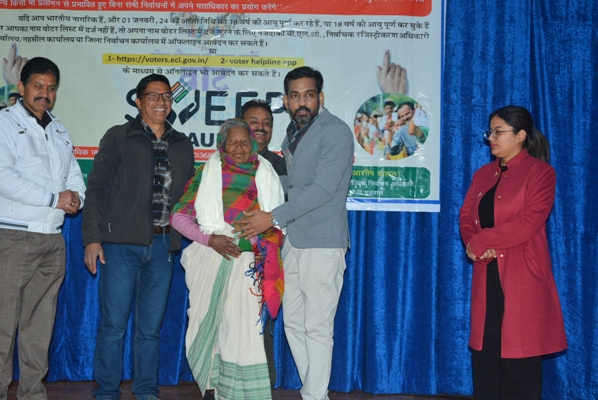 डीएम डॉ. आशीष चौहान ने राष्ट्रीय मतदाता दिवस पर दिलाई शपथ; नये मतदाता, दिव्यांग, बुजुर्ग मतदाताओं को सम्मानित कर मतदान के लिए किया प्रेरित