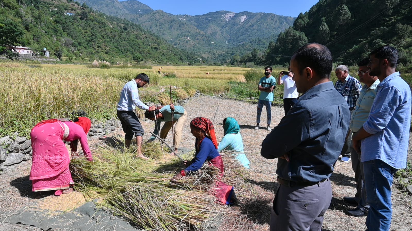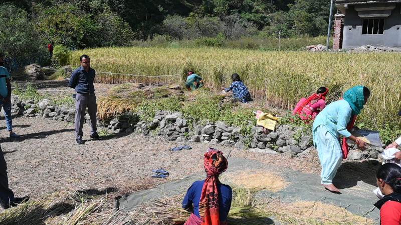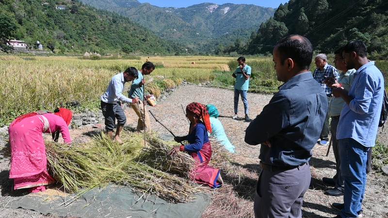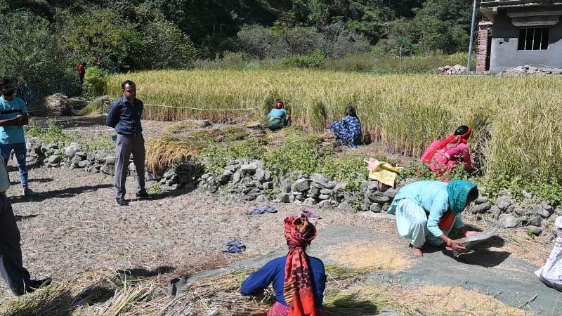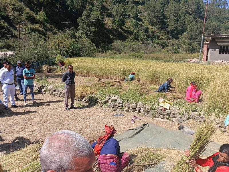जिलाधिकारी ने बताया कि जोनतारी देवी के धान के खेत में 0.03 हेक्टेयर के प्लाट में 17.5 कि.ग्रा. धान उत्पादित हुआ, जिसको सुखाकर 15 दिन बाद पुनः मापा जायेगा। उन्होंने कहा कि क्रॉप कटिंग प्रयोग के आधार पर ही जिले में फसलों की औसत उपज और उत्पादन के आंकड़े तैयार किए जाते हैं, जिससे जिले में हो रहे उत्पादन की सटीक जानकारी हांसिल की जाती है। अंतिम आंकड़े परीक्षण के उपरांत राज्य स्तर पर कृषि निदेशालय द्वारा जारी किये जाते हैं। इस दौरान ग्राम प्रधान जड़धार गांव प्रीती जड़दारी ने क्षेत्र में धान उत्पादन, धान की किस्म, बिक्री आदि के संबंध में जानकारी दी गई। उन्होंने बताया कि क्षेत्र में जैविक खेती की जाती है। इस मौके पर सांख्यिकी अधिकारी विपिन रतूड़ी, भूलेख अधिकारी गिरीश चंद्र पोखरियाल, एडीआईओ सूचना भजनी भण्डारी, तहसीलदार धर्मवीर, पटवारी सरोजनी, कानूनगो महिपाल पुण्डीर सहित ग्रामवासी मौजूद रहे।