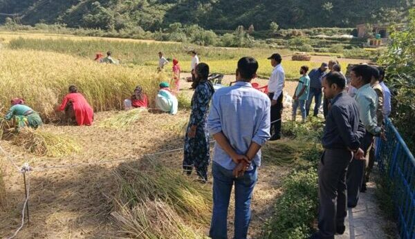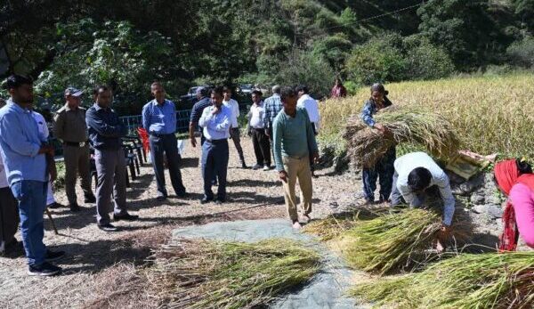 टिहरी : फसलों की औसत उपज और उत्पादन के आंकड़े संकलन को लेकर जिलाधिकारी मयूर दीक्षित पहुंचे जड़धारगांव चंबा। कृषि फसल प्रदर्शन (खरीफ) वर्ष 2023-24 में जनपद में धान फसल की औसत उपज और उत्पादन के आंकड़े संकलन को लेकर बुधवार को जिलाधिकारी की उपस्थिति में जनपद क्षेत्रांतर्गत विकासखण्ड चम्बा के ग्राम जड़धारगांव मध्ये डीगली नामे तोक में जोनतारी देवी पत्नी गुमान सिंह के धान के खेत में 0.03 हेक्टेयर के प्लाट में क्रॉप कटिंग की गई तथा उत्पादन के आंकड़े संकलित किये गए।