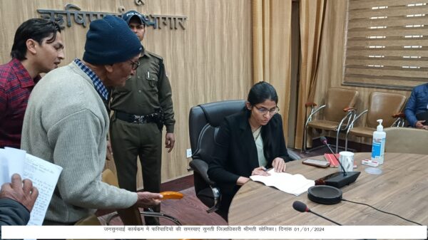 देहरादून : जिलाधिकारी सोनिका की अध्यक्षता में ऋषिपर्णा सभागार कलेक्ट्रेट में जनसुनवाई कार्यक्रम का अयोजन किया गया। जनसुनवाई में 69 शिकायतें प्राप्त हुई, जिनमे भूमि, सिंचाई, आर्थिक सहायता, निजी चिकत्सालय द्वारा वेतन रोके जाने, घरों में पानी घुसने आदि शिकायतें प्राप्त हुई। जिलाधिकारी ने निर्देश देते हुए कहा कि जनसुनवाई में प्राप्त हो रही शिकायतों को गंभीरता से लेते हुए समयबद्ध निस्तारण करें तथा शिकायतों के निस्तारण पर अपने विभाग स्तर पर भी समीक्षा करें। जांच वाली शिकायतों के संबंध में शिकायतकर्ता को भी सूचित करें। भूमि सीमांकन सम्बन्धी शिकायतों को 1 सप्ताह के भीतर निस्तारण की कार्यवाही करते हुए अख्या प्रस्तुत करने के निर्देश दिए।