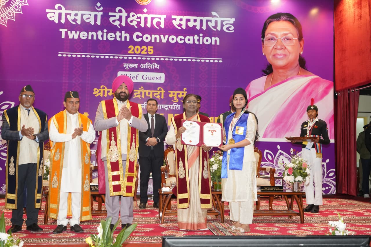 इस अवसर पर राज्यपाल लेफ्टिनेंट जनरल गुरमीत सिंह (से नि) ने कहा कि आज का यह अवसर हम सभी के लिए अत्यंत गौरव का क्षण है कि इस दीक्षांत समारोह में हमें राष्ट्रपति का सानिध्य और मार्गदर्शन प्राप्त हो रहा है। उन्होंने देवभूमि उत्तराखण्ड में पूरे प्रदेश वासियों की ओर से राष्ट्रपति का हार्दिक अभिनंदन और स्वागत किया। राज्यपाल ने विद्यार्थियों से कहा कि आपके हाथों में जो उपाधि है यह तभी सार्थक होगी जब आप इसे सेवा, सत्यनिष्ठा और संवेदना के साथ जोड़ेंगे। उन्होंने कहा कि शिक्षा का उद्देश्य केवल बुद्धि का विकास नहीं बल्कि चरित्र का निर्माण भी है। ज्ञान तभी सार्थक है, जब उसके साथ नैतिकता जुड़ी हो। आज जब समाज तेजी से बदल रहा है तब विद्यार्थियों के भीतर, ईमानदारी, अनुशासन और जिम्मेदारी का भाव और भी आवश्यक है।