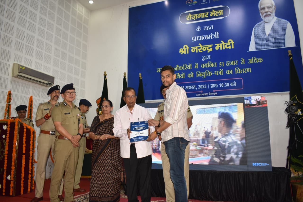 इस समारोह के दौरान मुख्य अतिथि ने कहा कि आज समस्त भारत वर्ष के विभिन्न राज्यों एवं केन्द्र शासित राज्यों के 45 केन्द्रों पर विकसित भारत के संकल्प को साकार करने के उद्देश्य के साथ 8वें रोजगार मेले का आयोजन किया गया है । रोजगार मेले के माध्यम से 51,000 अधिक युवाओं को नियुक्ति पत्र वितरित किए जायेगे, जिसमें से एक केन्द्र देहरादून, उत्तराखण्ड है । देहरादून केन्द्र में आज विभिन्न CAPF संगठनों जैसे कि भारत तिब्बत सीमा पुलिस बल, सीमा सुरक्षा बल, केन्द्रीय रिजर्व पुलिस बल, केन्द्रीय औद्योगिक सुरक्षा बल, सशस्त्र सीमा, असम राइफल्स के युवाओं को नियुक्ति पत्र वितरित किए गए हैं । माननीय प्रधानमंत्री द्वारा ऑनलाईन वर्चुअल मीटिंग के माध्यम से युवाओं को उनकी नियुक्ति पर शुभकामनाएं एवं बधाई दी ।