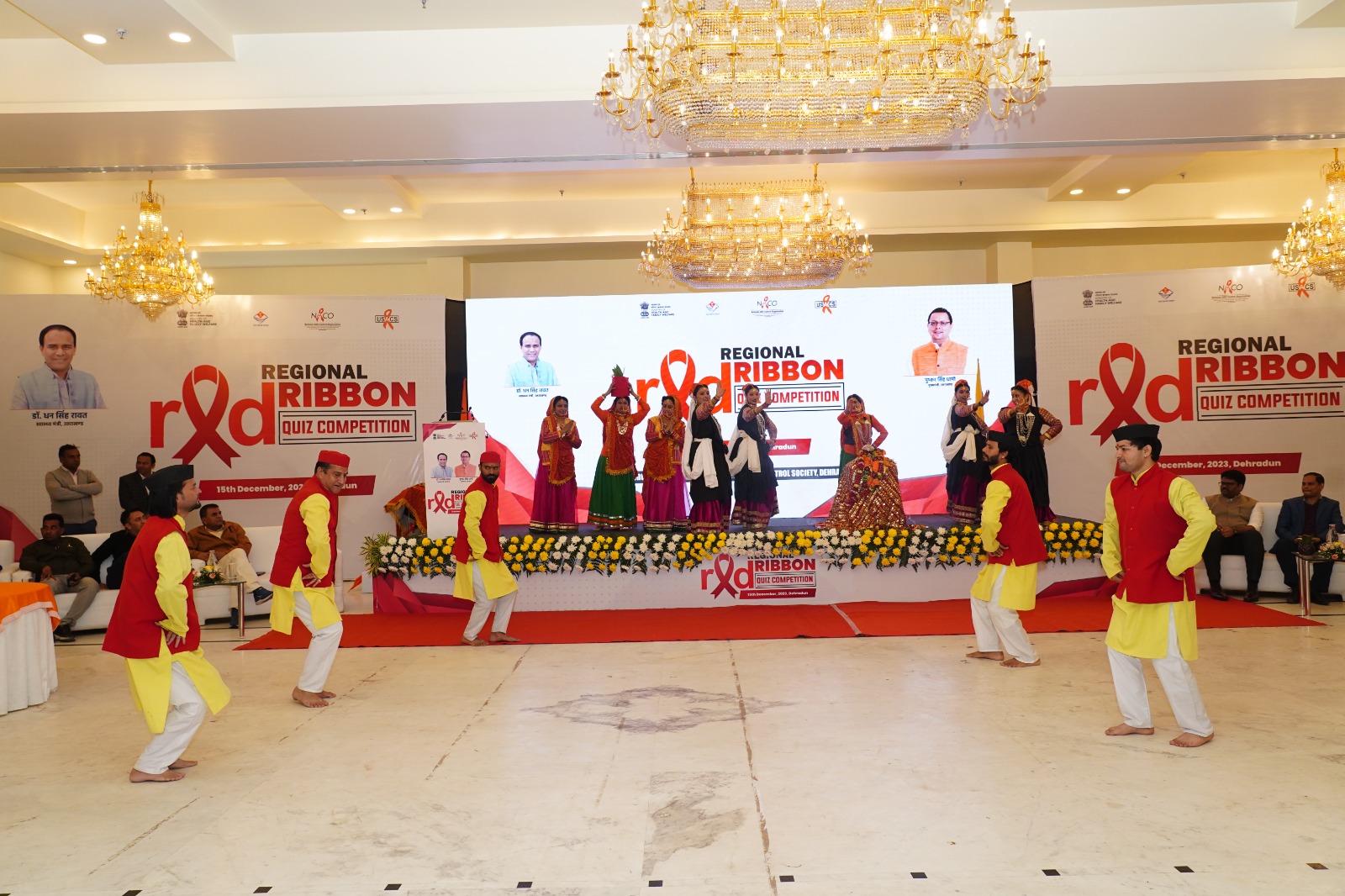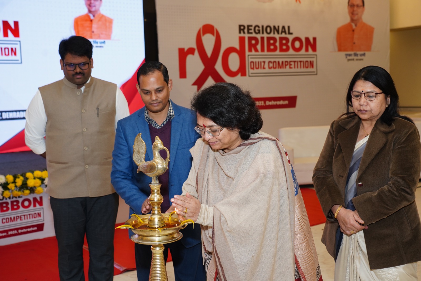 Regional Level Quiz Competition का शुभारम्भ महानिदेशक चिकित्सा स्वास्थ्य एवं परिवार कल्याण उत्तराखण्ड डॉ. विनीता शाह द्वारा दीप प्रज्जवलित कर किया गया एवं अतिथियों को पुष्पगुच्छ भेंट किये गये। कार्यक्रम में डॉ. आषुतोष स्याना एवं डॉ. भागीरथी जंगपांगी, निदेशक, चिकित्सा, स्वास्थ्य एवं परिवार कल्याण, उत्तराखण्ड द्वारा विशिष्ट अतिथि के रूप में प्रतिभाग किया गया। इसके पश्चात सांस्कृतिक दल हंसा नृत्य एवं नाट्य संस्था द्वारा स्वागत गीत की प्रस्तुति दी गयी तथा नन्दा देवी राजजात यात्रा की आकर्षक प्रस्तुति दी गयी। अपर परियोजना निदेशक, उत्तराखण्ड राज्य एड्स नियंत्रण समिति डॉ. अजय कुमार, द्वारा मुख्य अतिथि तथा राज्यों से उपस्थित प्रतिनीधियों एवं प्रतिभगियों का स्वागत किया गया। उन्होंने कहा कि आज इस बात की आवष्यकता है कि समाज के प्रत्येक व्यक्ति को एचआईवी/एड्स के प्रति इतना जागरूक किया जाय कि हम इसे जड़ से खत्म कर सके।