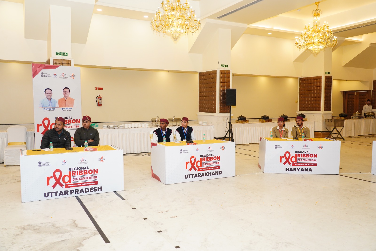 देहरादून। उत्तराखण्ड राज्य एड्स नियंत्रण समिति, चिकित्सा स्वास्थ्य एवं परिवार कल्याण विभाग, द्वारा आज देहरादून के सुभाष रोड़ स्थित होटल पैसेफिक में Regional Level Quiz Competition का आयोजन किया गया। क्षेत्रीय स्तर की इस प्रतियोगिता में उत्तराखण्ड राज्य सहित कुल 09 राज्यों (हिमाचल प्रदेश, चण्डीगढ, हरियाणा, पंजाब, दिल्ली, राजस्थान, जम्मू कश्मीर एवं उत्तर प्रदेश) के प्रतिभागियों द्वारा प्रतिभाग किया गया। प्रतियोगिता में 09 राज्यों के राज्य स्तर की क्विज प्रतियोगिता के प्रथम विजेता टीम, नोडल अध्यापक एवं राज्यों के SACS Official  के साथ-साथ नाको, भारत सरकार के प्रतिनिधि नेशनल कन्सल्टेन्ट आईईसी एवं मेनस्ट्रीमिंग बेंजामीन फ्रेंकलीन द्वारा प्रतिभाग किया गया। उत्तराखंडी पारंपरिक तरीके से अतिथियों का स्वागत किया गया। अतिथियों को पहाड़ी टोपी के साथ केदारनाथ का स्मृति चिन्ह भेंट किया गया।