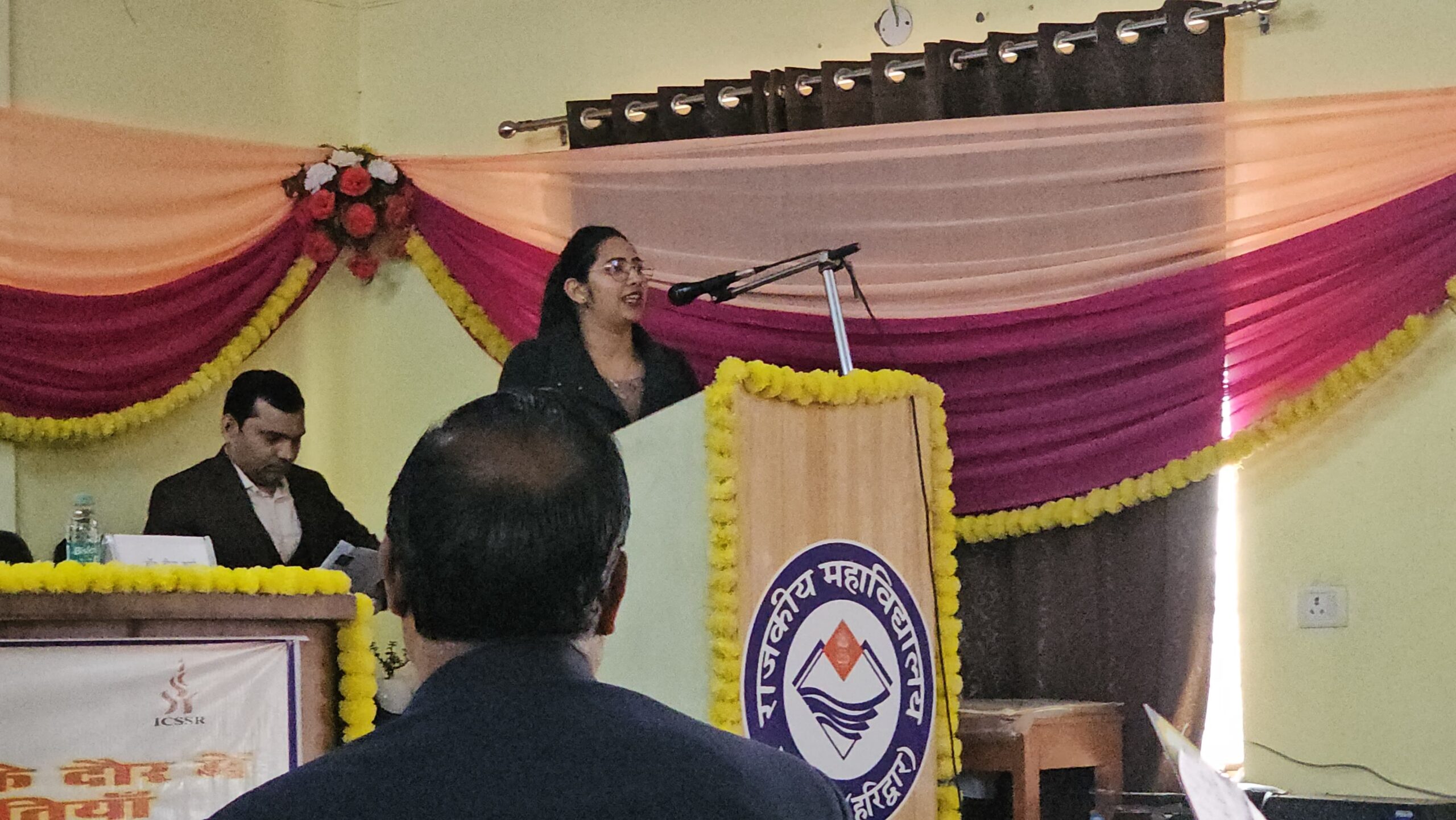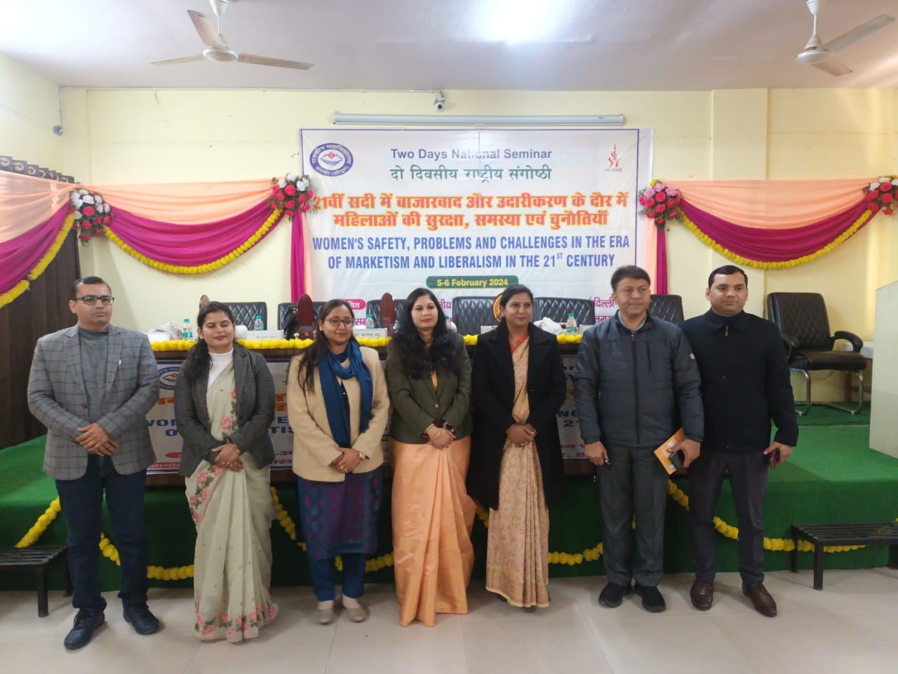 कार्यकम को आगे बढ़ाते मुख्य अतिथि डॉ. तनु मित्तल ने पावर पॉइट के माध्यम से चित्रित किया कि समाज का विकास तभी सम्भव है जब एक नारी शिक्षित होगी तभी एक अच्छे राष्ट्र का निर्माण होगा, तत्पश्चात डॉ. कल्पना भटट् मुख्य वक्ता ने पावर पॉइट के माध्यम से नारी सुरक्षा के समस्त विषयों पर गहनता से प्रकाश डाला और बताया महिलायें जब सुरक्षित है जब वो अपने आप को सुरक्षित समझना महसूस करने लगे। इसके अवसर पर शोध वक्ता के रूप में डॉ. निशा एवं हरीश राम जैसे शोधार्थियों ने अपने शोध पत्र प्रस्तुत किये। इस के उपरान्त महाविद्यालय के प्राचार्य डॉ तीर्थ प्रकाश ने अपने अध्यक्षीय उद्बोधन में आमंन्त्रित अतिथियों का धन्यवाद दिया। उन्होंने कड़े शब्दों में कहा कि यदि भारत को विकसित राष्ट्र की श्रेणी में अग्रणी होना है तो महिलाओं के प्रति सोच को बदलना होगा। इस के पश्चात प्राचार्य द्वारा आमंन्त्रित अतिथियों का शॉल एवं स्मृति चिन्ह प्रदान कर सम्मानित किया। उन्होंने बताया कि किस प्रकार बहुत सारे विचार साहित्य के माध्यम से ही ले सकते है एवं इस कार्यकम को सफल बनाने के लिए महाविद्यालय परिवार के डॉ. कलिका काले, डॉ. अनुराग, डॉ. रचना वत्स, सरमिष्टा गीता जोशी, सूर्य प्रकाश, रोहित, सन्नी, जगपाल एवं छात्र छात्राओं बहुतायत में उपस्थित रहे।