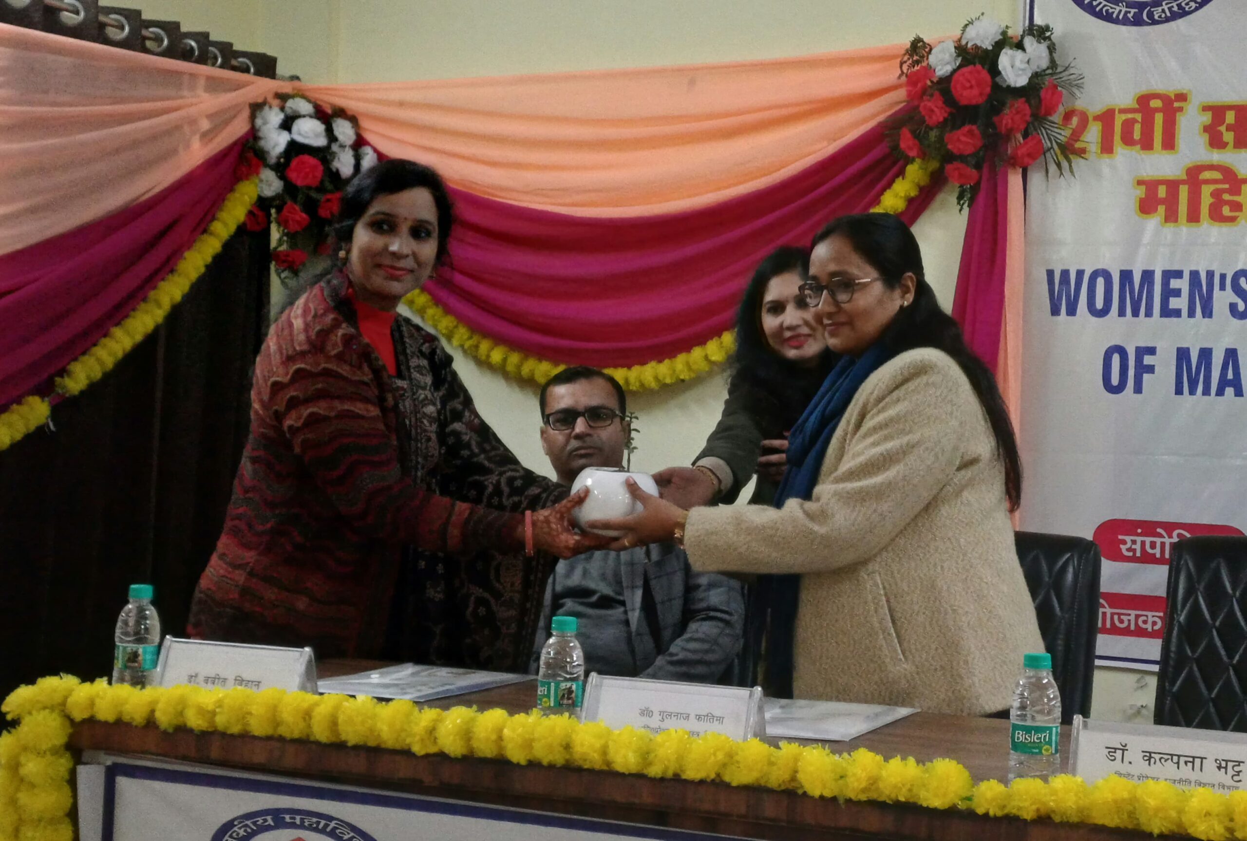 इस के उपरान्त राष्ट्रीय संगोष्ठी की समन्वयक डॉ. दीपा शर्मा ने संगोष्ठी के पहले दिन की रूपरेखा प्रस्तुत की। सर्वप्रथम मंच पर डॉ. बबित विहान को व्याख्यान हेतु मंच पर आंमत्रित किया गया उन्होंने बताया कि महिला एवं पुरुष एक गाड़ी के दो पहिये है जैसे भगवान शिव नारी के अभाव में जड़ बने रहते है इसके पश्चात डॉ. गुलनाज फात्मा एसो. प्रो. ने पावर पॉइट के माध्यम से बताया कि विकास वादी एवं आध्यात्मिक दृष्टि से महिला उन्नति के पथ पर अग्रसर है।