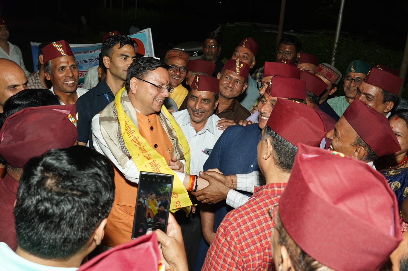 सीएम पुष्कर सिंह धामी के अहमदाबाद पहुंचने पर प्रवासी उत्तराखंडवासियों द्वारा किया गया भव्य स्वागत