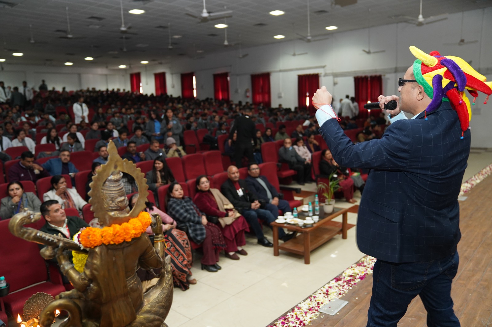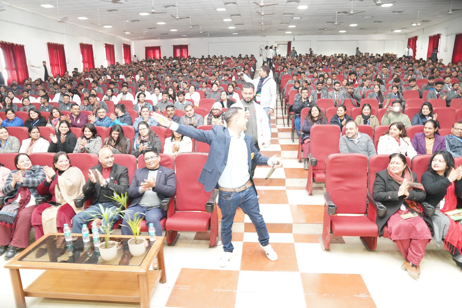 हास्य योग गुरू हरीश रावत ने हास्य योग के माध्यम से शारीरिक बीमारियों के समाधान, फेफडों तक ऑक्सीजन पहुंचाने सम्बन्धित योग बताकर सभी को स्वस्थ रहने का संदेश दिया। उन्होंने हास्य योग के कई माॅडल प्रस्तुत कर फेकल्टी व छात्र-छात्राओं को खूब हंसाया। कार्यक्रम को सफल बनाने में डाॅ लोकेश गम्भीर, डाॅ मनीष एवं शफी खुराना का विशेष सहयोग रहा।
