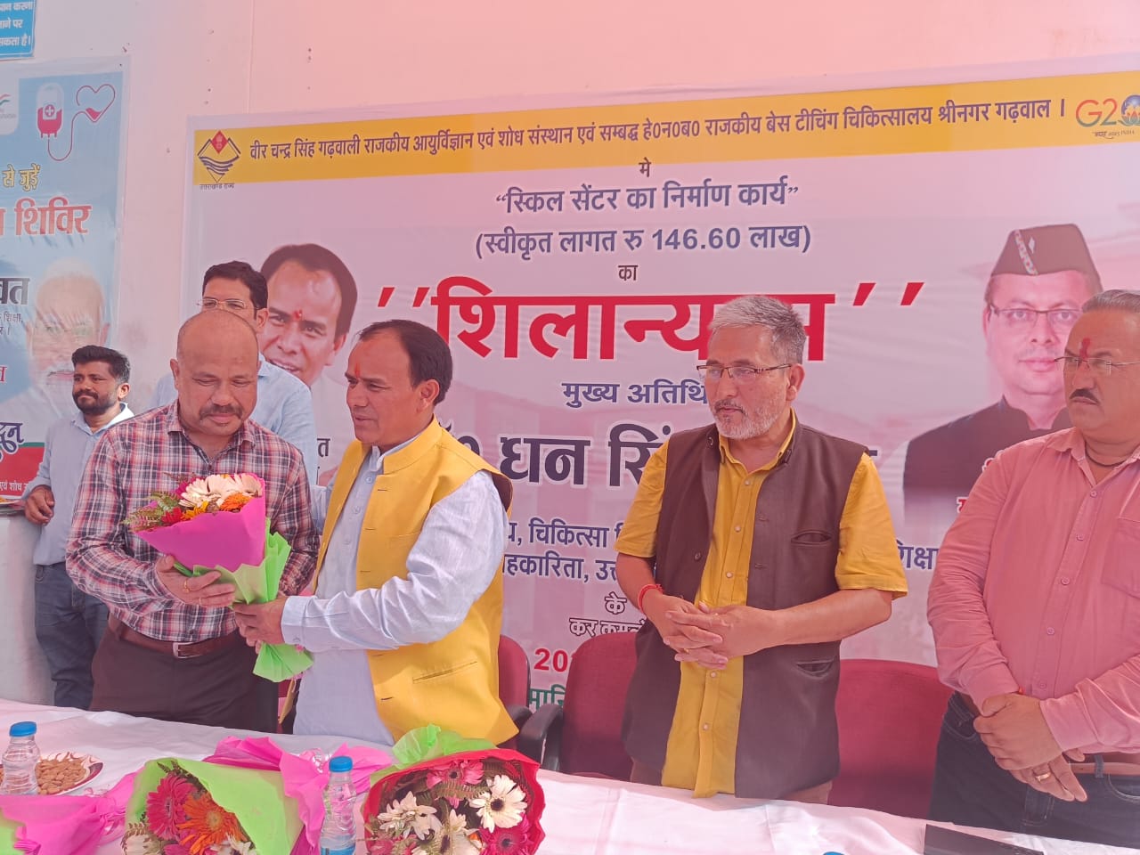 श्रीनगर/देहरादून : सूबे के चिकित्सा स्वास्थ्य एवं चिकित्सा शिक्षा मंत्री डॉ. धन सिंह रावत ने आज श्रीनगर मेडिकल कॉलेज के टीचिंग बेस अस्पताल में अति आधुनिक स्किल सेंटर का शिलान्यास किया। प्रथम चरण में 146.60 लाख की लागत से तैयार होने वाले इस सेंटर में बेस चिकित्सालय व राज्य के समस्त चिकित्सको, नर्सिंग स्टाफ, पैरामेडिकल स्टाफ, पुलिस व डिजास्टर रिस्पांस टीम को इमरजेंसी लाइफ सपोर्ट, बेसिक लाइफ सपोर्ट और एडवांस लाइफ सपोर्ट की ट्रैनिंग दी जायेगी। स्किल सेंटर के शिलान्यास अवसर पर सूबे के चिकित्सा स्वास्थ्य एवं चिकित्सा शिक्षा मंत्री डॉ. धन सिंह रावत ने कहा कि श्रीनगर मेडिकल कॉलेज की उपलब्धि में एक और अध्याय जुड़ गया है। जिसका लाभ पूरे प्रदेश को मिलेगा। उन्होंने कहा कि पूर्व में स्किल सेंटर खोलने के लिये भारत सरकार को प्रस्ताव भेजा गया था जिस पर केन्द्रीय स्वास्थ्य मंत्री मनसुख मंडविया ने अपनी सैद्धांतिक सहमति दी थी। जिसके लिये उन्होंने केंद्रीय स्वास्थ्य मंत्री का विशेष आभार जताया।