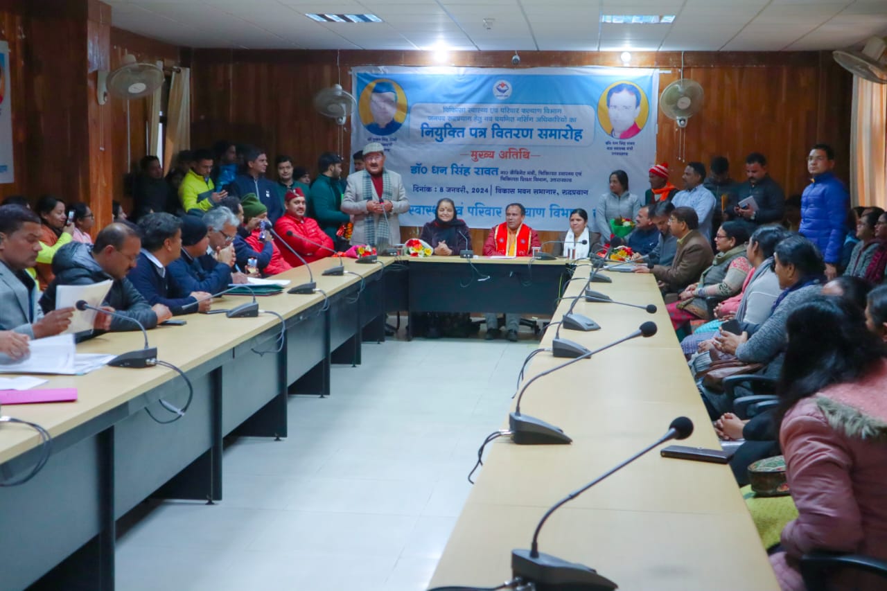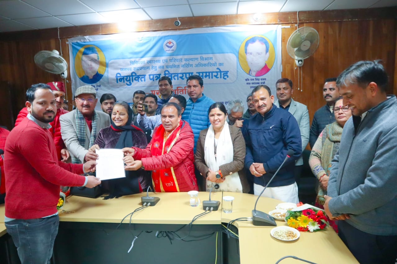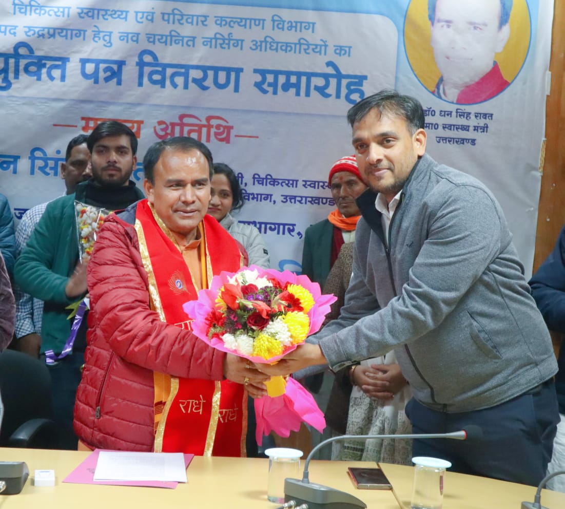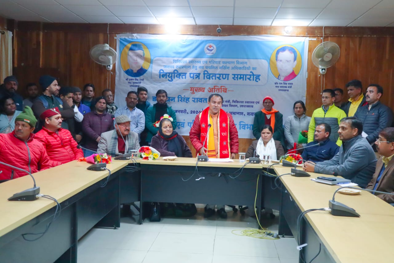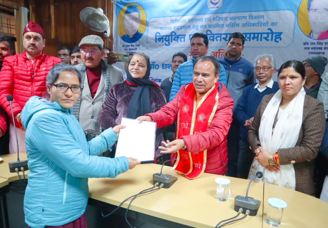 स्वास्थ्य मंत्री डॉ. धन सिंह रावत ने रुद्रप्रयाग में 53 नवनियुक्त नर्सिंग अधिकारियों को सौंपे नियुक्ति पत्र