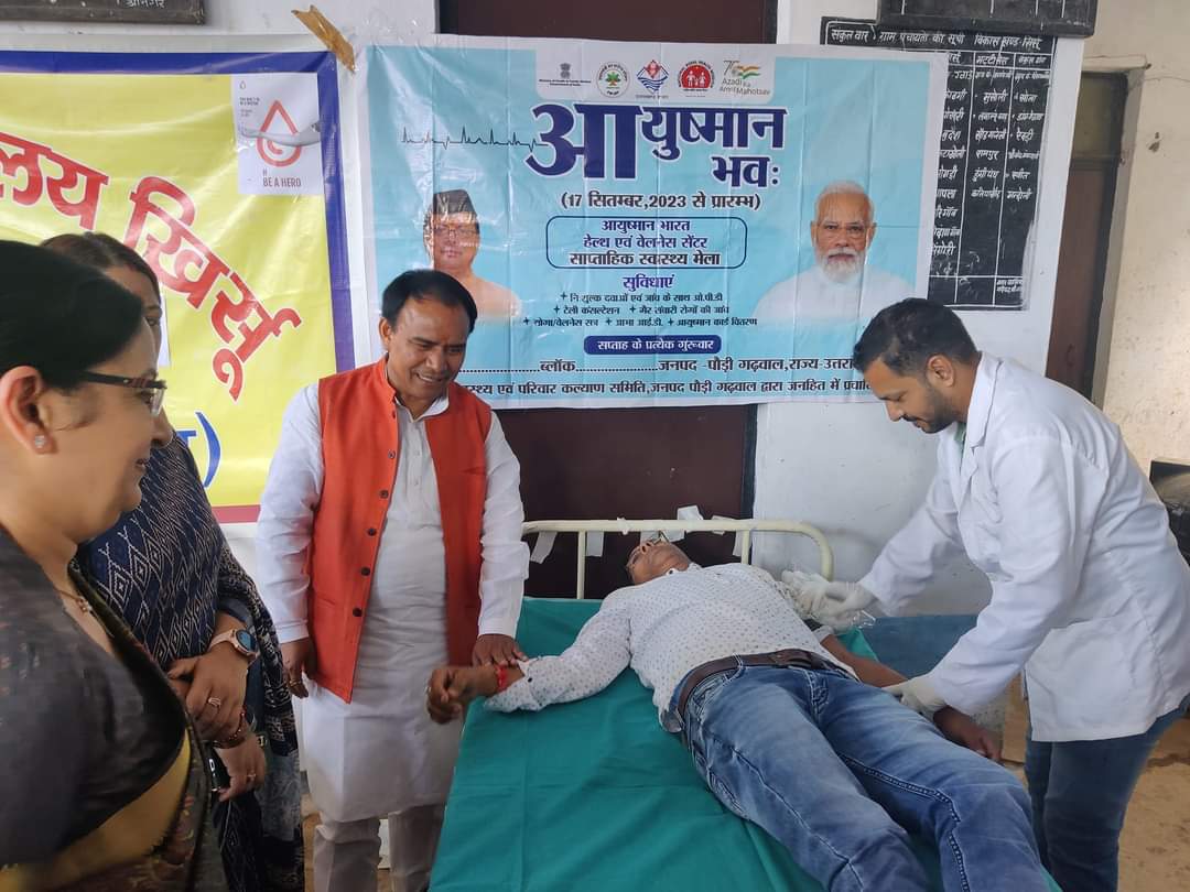 श्रीनगर : उच्च शिक्षा, स्वास्थ्य मंत्री डॉ. धन सिंह रावत ने श्रीनगर विधानसभा के अंतर्गत विभिन्न कार्यक्रमों में प्रतिभाग करतें हुए योजनाओं का लोकापर्ण व शिलान्यास किया। उन्होंने कहा कि केंद्र व प्रदेश सरकार निरंतर रूप से विकास की ओर कार्य कर रही है। कैबिनेट मंत्री डॉ. धन सिंह रावत ने विद्या मंदिर श्रीकोट में संस्कृत छात्र प्रतियोगिता के कार्यक्रम में प्रतिभाग किया। उन्होंने कहा कि संस्कृति के साथ-साथ संस्कृत को बचाकर रखना भी हमारा लक्ष्य होना चाहिए, जिससे यह भाषा हमें हमारे पूर्वजों से विरासत में मिली है। उसके पश्चात उन्होंने मेडिकल कॉलेज श्रीनगर का निरीक्षण करते हुए वहां भर्ती डेंगू मरीजों का हाल-चाल जाना। उन्होंने चिकित्सकों व संबंधित अधिकारियों को डेंगू की रोकथाम के लिए आवश्यक दिशा निर्देश भी दिए। वहीं उन्होंने आयुष्मान भवः अभियान के तहत राजकीय पॉलिटेक्निक, श्रीनगर में आयोजित रक्तदान शिविर कार्यक्रम में प्रतिभाग करते हुए रक्तदान करने पहुंचे लोगों को इस नेक कार्य के लिए धन्यवाद किया व उन्हें सम्मानित भी किया गया।