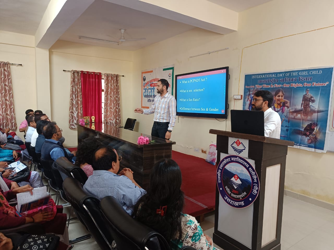 पौड़ी : अंतरराष्ट्रीय बालिका दिवस के अवसर पर स्वास्थ्य विभाग के तत्वाधान में  राजकीय महाविद्यालय थलीसैंण में हमारा समय हमारे अधिकार हमारा भविष्य थीम पर जनजागरुकता कार्यक्रम का आयोजन किया गया। कार्यकम समन्वयक आशीष रावत द्वारा लिंग चयन, लैंगिक भेदभाव के संबंध में व अल्ट्रासाउंड केन्द्रों पर स्वास्थ्य विभाग द्वारा की जाने वाली कार्यवाही व सम्बन्धित प्रक्रिया के बारे में उपस्थित छात्र-छात्राओं को जानकारी दी। उन्होंने कहा कि समाज में बालिकाओं के साथ भेदभाव को मिटाने उनकी स्थिति को बेहतर बनाने व उन्हें अपने अधिकारों के प्रति जागरूक करने के लिए इस दिवस को मनाया जाता है। स्वास्थ्य विभाग की ओर से भी लिंगानुपात को कम करने और बालिकाओं के बेहतर स्वास्थ्य को लेकर समय-समय पर जन जागरूकता कार्यक्रम चलाये जाते हैं। उन्होंने कहा कि जनपद में लिंगानुपात की स्थिति में लगातार सुधार हो रहा है। समाज में बालिकाओं के साथ सामाजिक भेदभाव और सामाजिक शोषण पर विराम लगना चाहिए, जिसका बालिकायें हर रोज सामना करती हैं।