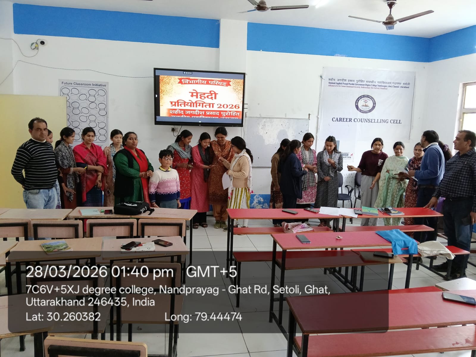 नंदानगर : जनपद चमोली स्थित शहीद जगदीश प्रसाद पुरोहित राजकीय महाविद्यालय नंदानगर में शनिवार को हिंदी एवं शिक्षाशास्त्र विभाग की ओर से विभागीय परिषद के तहत मेहंदी एवं पोस्टर प्रतियोगिता का आयोजन किया गया। कार्यक्रम में विद्यार्थियों ने उत्साहपूर्वक भाग लेते हुए अपनी रचनात्मक प्रतिभा का प्रदर्शन किया।