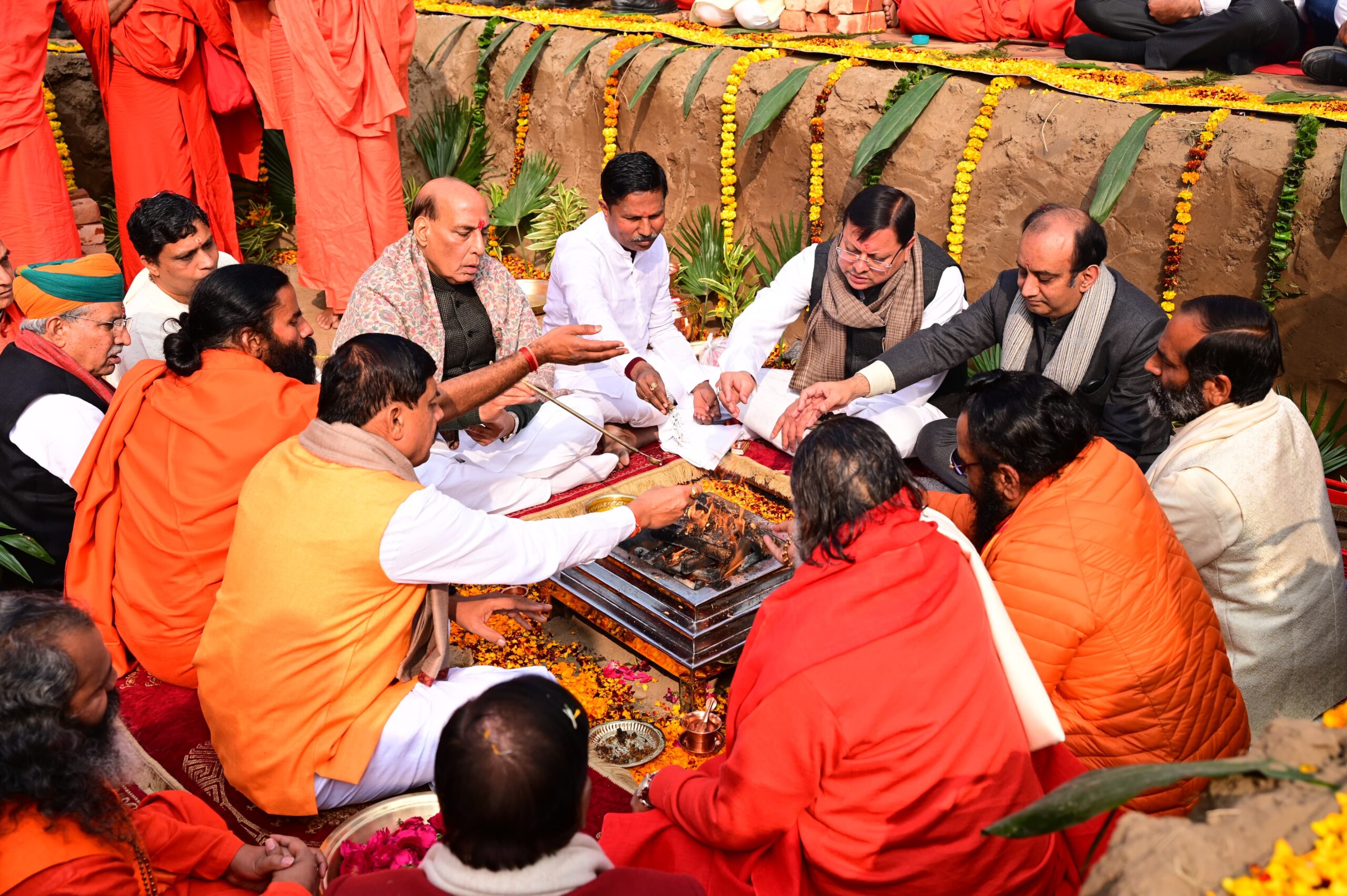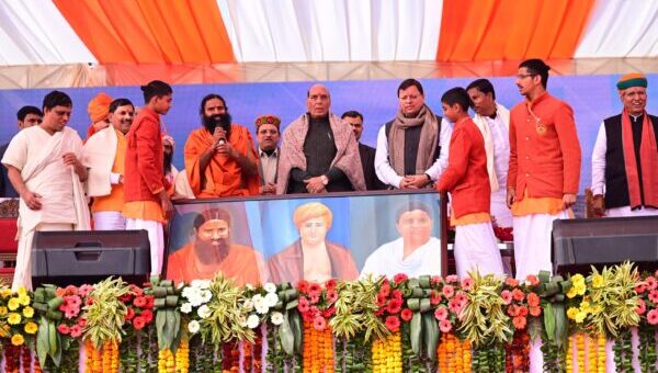 हरिद्वार : केंद्रीय रक्षा मंत्री राजनाथ सिंह ने शनिवार को स्वामी दर्शनानन्द गुरूकुल महाविद्यालय, हरिद्वार में मुख्यमंत्री पुष्कर सिंह धामी, मध्य प्रदेश के मुख्यमंत्री डॉ. मोहन यादव, केन्द्रीय कानून मंत्री अर्जुन राम मेघवाल एवं योग गुरु स्वामी रामदेव की उपस्थित में ‘पतंजलि गुरूकुलम’ एवं ‘आचार्यकुलम’ का भूमि पूजन कर शिलान्यास किया। रक्षा मंत्री राजनाथ सिंह ने अपने संबोधन में कहा कि देश में गुरूकुलों में न केवल आधुनिक शिक्षा प्रदान की जाए, बल्कि भारत की नैतिक और सांस्कृतिक विरासत को संरक्षित रखने के लिए और अधिक गुरुकुल स्थापित किए जाने चाहिए। ऐसे समय में जब विदेशी संस्कृति के अनुकरण के कारण नैतिक मूल्यों का ह्रास हो रहा है, युवाओं को नैतिक मूल्यों के समावेश के साथ आधुनिक शिक्षा प्रदान करने के लिए गुरुकुलों को यह दायित्व निभाने के लिए आगे आना चाहिए।