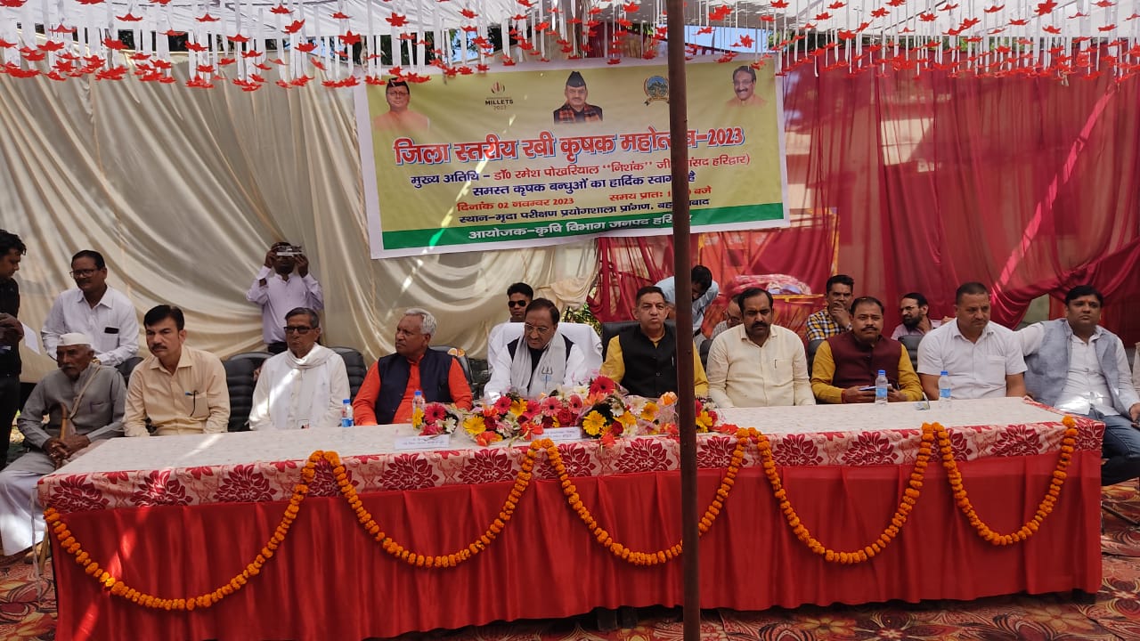 हरिद्वार : पूर्व शिक्षा मंत्री भारत सरकार, पूर्व मुख्यमंत्री उत्तराखण्ड, सांसद हरिद्वार डॉ. रमेश पोखरियाल निशंक ने बृहस्पतिवार को बहादराबाद स्थित मृदा परीक्षण प्रयोगशाला में कृषि विभाग द्वारा आयोजित कृषक महोत्सव रबी-2023 का फीता काटकर एवं दीप प्रज्ज्वलित कर शुभारम्भ किया।