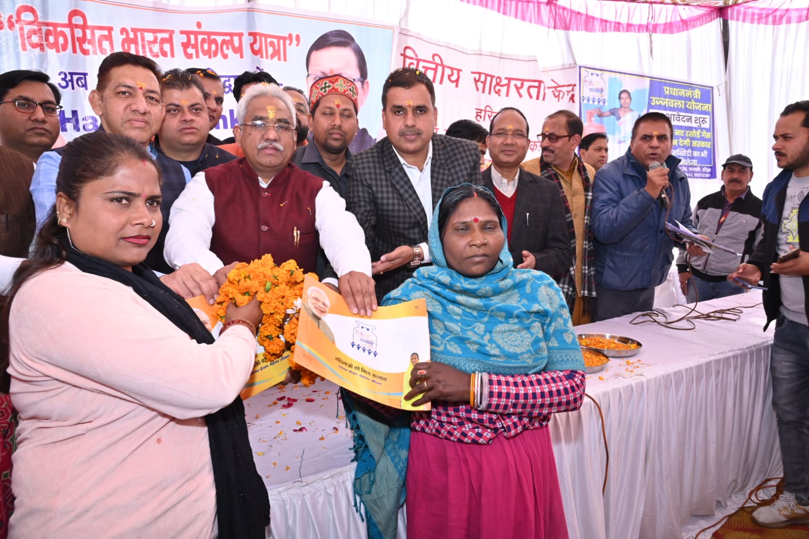 कार्यक्रम को संबोधित करते हुए नगर विधायक मदन कौशिक ने भी सरकार की इन् योजनाओं का पूरा लाभ उठाने का आहवान लोगों से किया l कार्यक्रम का सफल संचालन डॉ. नरेश चौधरी ने किया l इस अवसर पर भाजपा जिला अध्यक्ष हरिद्वार संदीप गोयल, महामंत्री आशु चौधरी, उपाध्यक्ष विकास तिवारी, लव शर्मा, संयोजक मोहित वर्मा, अपर जिलाधिकारी (प्रशासन) पीएल शाह, एसडीएम अजय वीर सिंह, एसएनए नगर निगम श्याम सुंदर, संजय चोपड़ा, सहित सम्बन्धित जन-प्रतिनिधि, अधिकारीगण तथा बड़ी संख्या में लाभार्थी उपस्थित थे।
