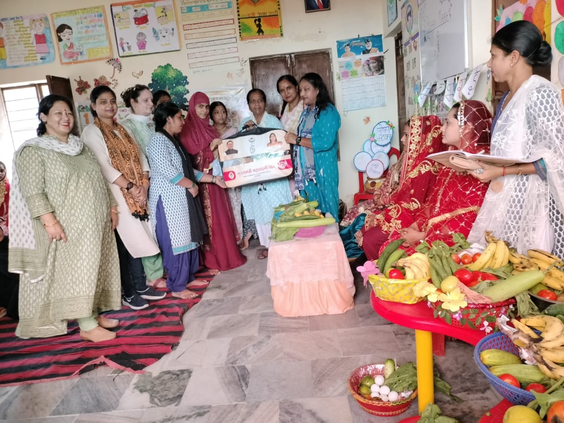 जिला कार्यक्रम अधिकारी ने महिलाओं को संदेश दिया कि गोद भराई कार्यक्रम के द्वारा महिलाओं को यह बताया जाता है कि कैसे वह गर्भावस्था में ही अपने शिशु का तथा अपना ख्याल रखें ताकि स्वस्थ शिशु का जन्म हो सके और साथ ही उनके द्वारा यह भी बताया गया कि प्रसव संस्थागत ही होना चाहिए घर में प्रसव कराना मां तथा बच्चे दोनों के लिए जोखिम भरा है साथ ही टीकाकरण के महत्व को भी बताया गया कि कैसे बच्चे को सभी टीके लगाना अनिवार्य है। अन्नप्राशन कार्यक्रम भी केंद्र पर किया गया जिसमें जिला कार्यक्रम अधिकारी द्वारा बताया गया की 6 माह तक केवल मां का दूध ही बच्चे को पिलाना है। मां के दूध में सभी पोषक तत्व होते हैं जो बच्चों के लिए जरूरी हैं। ये मां के दूध में भरपूर है मां का दूध बच्चों के लिए अमृत समान होता है। 6 माह के पश्चात बच्चों को ऊपरी आहार भी देना चाहिए केंद्र पर किशोरी बालिकाओं के लिए मेहंदी प्रतियोगिता का आयोजन किया गया तथा सभी किशोरियों बालिकाओं को स्कूल बैग जिला कार्यक्रम अधिकारी द्वारा दिए गए। निर्धन धात्री महिलाओं को वैष्णवी किट तथा महालक्ष्मी किट अन्य धात्री महिलाओं को दी गई।