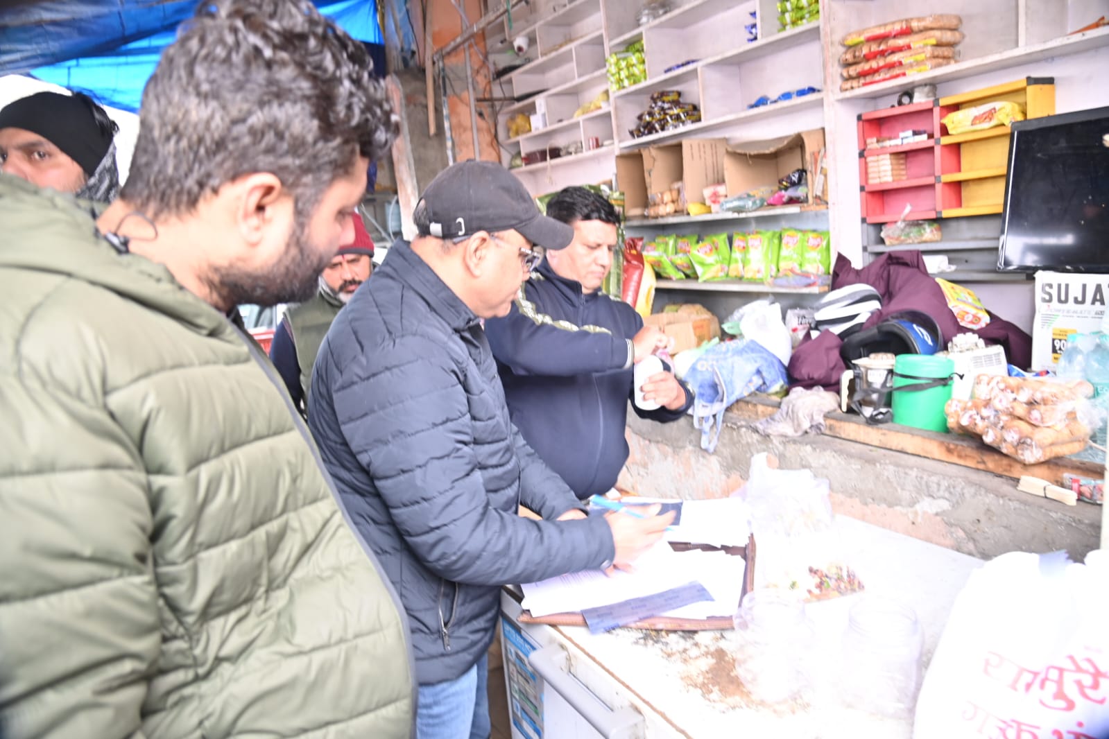 छापेमारी की  संयुक्त टीम निरीक्षण करते हुए बस अड्डा के निकट गुरु नानक भोजनालय व जे एंड के भोजनालय, मां गंगा भोजनालय आदि  स्थानों में पहुँची,  जिसके क्रम में 12 दुकानों  की चैकिंग के दौरान 04 सैंपल, जिसमें पकोड़ी, चना चाट एवम दूध और दही के लिए 03 खाद्य प्रतिष्ठानों को नोटिस , 08 प्रतिष्ठानों के एंटी लिट्रिंग एवम पॉलिथीन में  चालान कर 7500 रुपए वसूल किये गये तथा भोजनालयों में नानवेज परोसे जाने की आशंका के क्रम में कोई भी इस तरह का प्रकरण छापेमारी के दौरान सामने नहीं आया।