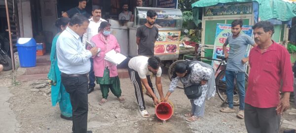 एक फूलों की दुकान के निरीक्षण के दौरान अन्दर की तरफ टायर व बाल्टी में जमा पानी पर लार्वा पाया गया जिस पर दुकान स्वामी को कड़ी फटकार लगाई गई तथा मौके पर ही 1000 रूपए की नकद चालान किया गया। सड़क की दूसरी तरफ निरीक्षण के दौरान एक ठेली के पीछे रखे बर्तन के पानी में लार्वा पाया गया। चालान हेतु उक्त के स्वामी के बारे  मालूम करने पर ज्ञात हुआ कि वह स्वंय डेंगू से ग्रसित हैं तथा अस्पताल में भर्ती है इसके उपरान्त टीम द्वारा दुकान, डेयरी आदि का निरीक्षण करते हुए एक आवास में पहुंचा जहां पर पक्षियों के लिए रखे गए पानी में लार्वा पाया गया। जिस पर घर के सभी सदस्यों को जागरूक करते हुए भवन स्वामी का 500 रूपए की नकद चालान किया गया। इसके उपरान्त अन्य घरों में भी निरीक्षण की गई जहां पर लोगों में डेंगू के प्रति जागरूकता देखने को मिली तथा अपने घरों के अन्दर एवं आस-पास नियमित सफाई रखने की बात कही गई। इसी प्रकार निरीक्षण करते हुए एक घर में कूलर के पानी में लार्वा पाया गया, जिस पर उन्हें जागरूक करते हुए 500 रूपए के नकद चालान किया गया।  जिलाधिकारी द्वारा आंवटित लक्ष्य के अनुसार टीम प्रतिदिन कार्य में जुटी हुई है साथ ही अपने कार्याें की रिर्पाेट संकलित कर प्रेषित कर रहे है।