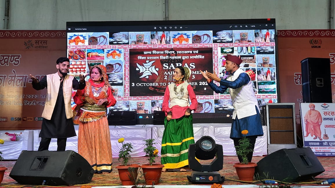 टिहरी : पूर्णानन्द खेल मैदान मुनिकीरेती टिहरी में आयोजित राष्ट्रीय सरस आजीविका मेला-2023 के अवसर पर स्वयं सहायता समूहों द्वारा स्टॉलों के माध्यम से 04 दिन में 46 लाख 79 हजार 498 तक की बिक्री गई। दस दिवसीय सरस आजीविका मेले में उत्तराखण्ड सहित देश के विभिन्न राज्यों से आये ग्रामीण महिला उद्यमियों द्वारा निर्मित हस्तशिल्प सामग्री की प्रदर्शनी आयोजित की गई। स्वयं सहायता समूह की महिलाएं अपने स्टॉल स्थापना के लिए निःशुल्क प्रवेश कर सकते हैं। स्वयं सहायता समूह के स्टॉलों में हेण्डलूम, हेण्डीक्राफ्ट, जूस, आचार, जूट मेकिंग, गोबर से बने दीपक, फर्म बेस्ट प्रोडक्ट, प्रसाद/जूट बैग, मसाले/दालें/हल्दी, मण्डुवा आटा, झंगोरा, मिल्क प्रोडक्ट, देशी घी, हेण्डमेड कुर्ती, पहाड़ी/हिमाचली टोपी, जड़ीबूटी, शादी के शॉल, हेण्डमेड बैग, बैडशीट, झूमर, एलईडी बल्ब, हेण्डलूम/रिंगाल, अखरोट, रेड राइस, पहाड़ी नमक, वूलन प्रोडक्ट, गुलाब जल, साड़ी, सूट, कोकरी, उनी वस्त्र, आर्टीफिशियल ज्वैलरी, पंजाबी जूती, घरेलू सामाग्री आदि का विक्रय किया जा रहा है।