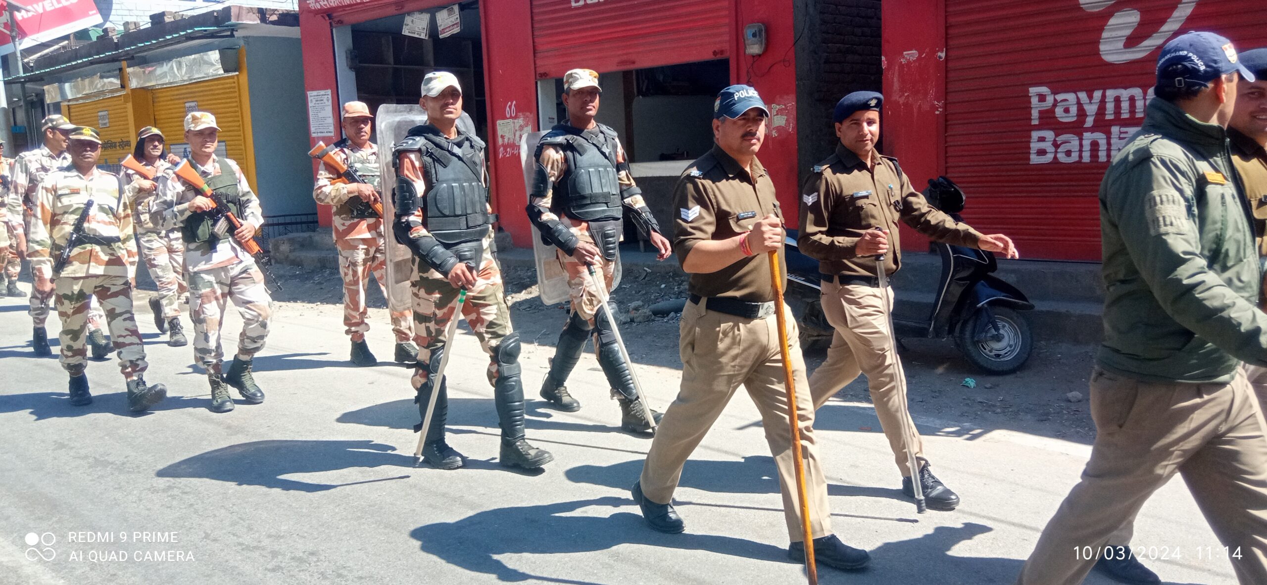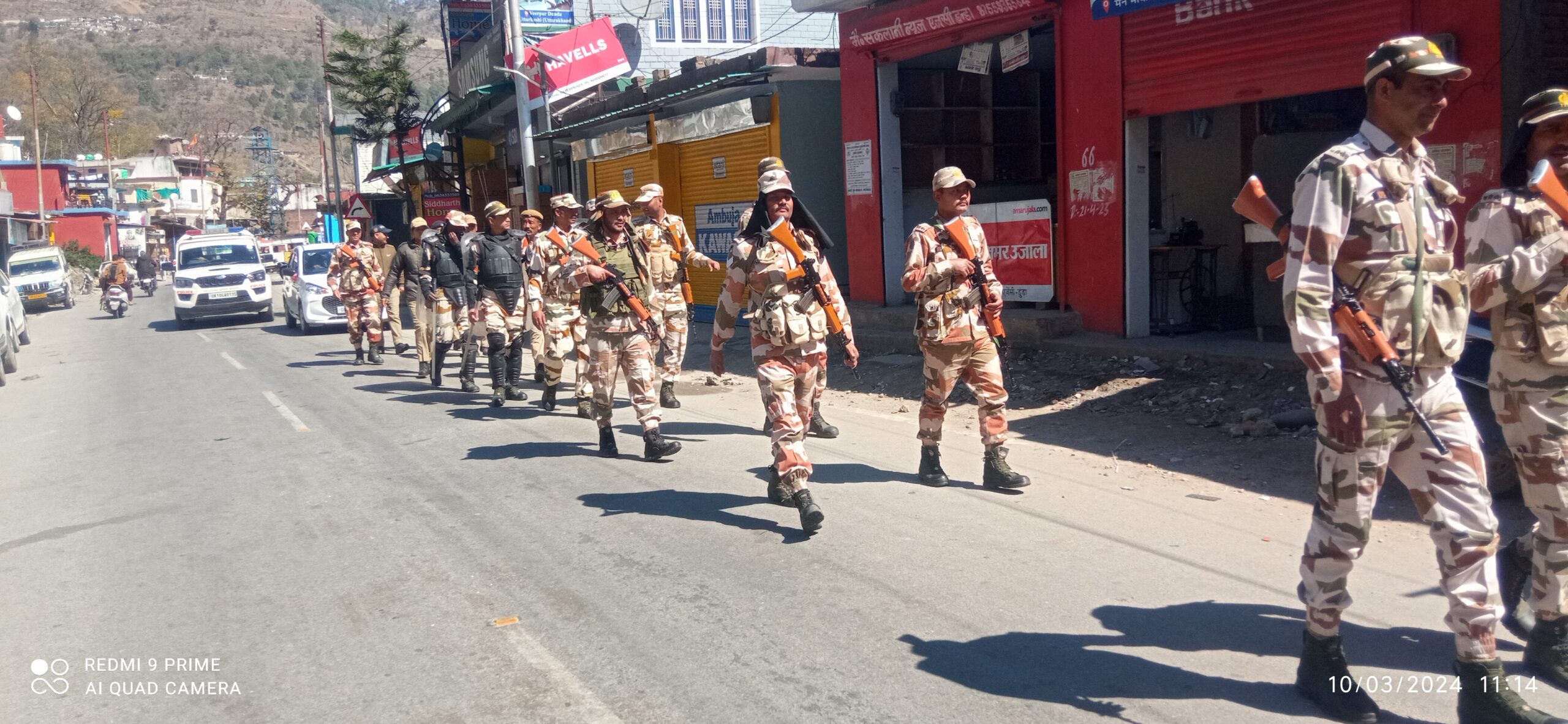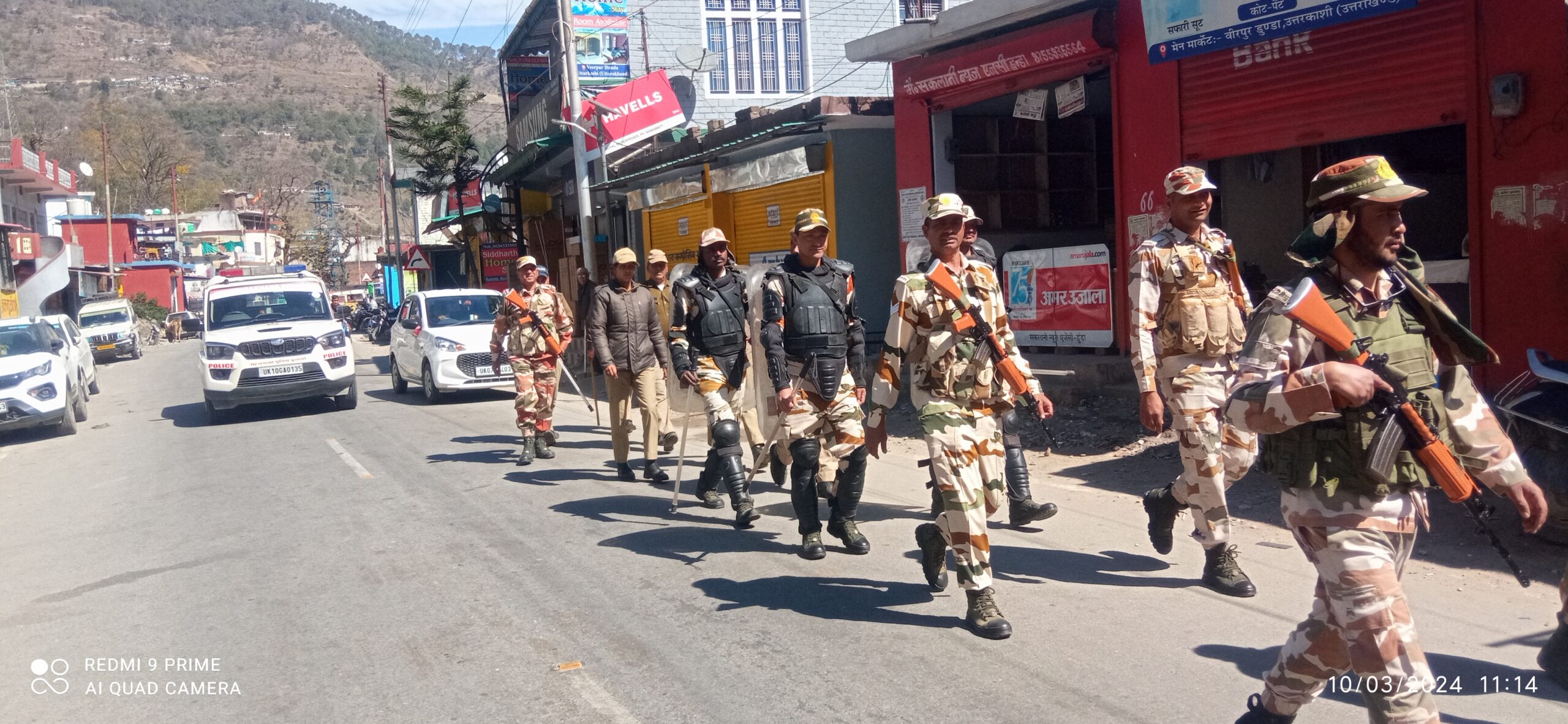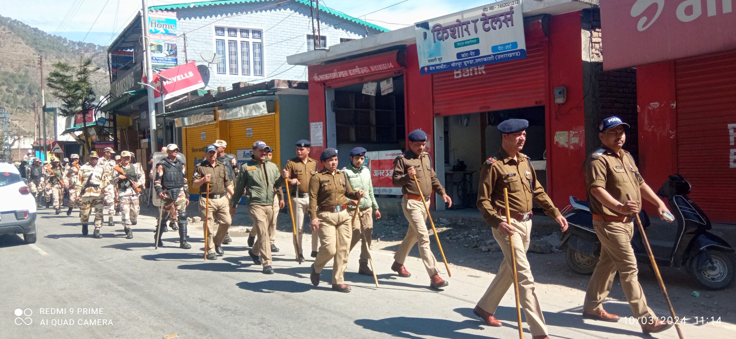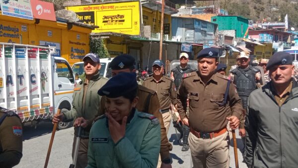 उत्तरकाशी (कीर्ति निधि सजवाण): पुलिस अधीक्षक उत्तरकाशी अर्पण यदुवंशी के दिशा-निर्देशन में उत्तरकाशी पुलिस आगामी लोकसभा सामान्य निर्वाचन-2024 को पारदर्शी एवं शांतिपूर्ण तरीके से सम्पन्न करवाने की तैयारियों मे जुटी है, पारदर्शी चुनाव तथा आमजन में सुरक्षा का भाव पैदा करने हेतु पुलिस द्वारा सभी क्षेत्रों में लगातार फ्लैग मार्च निकाले जा रहे हैं। आज उत्तरकाशी के डुंडा में पुलिस व पैरामिलिट्री फोर्स द्वारा डुंडा बाजार मे फ्लैग मार्च निकाला गया। फ्लैग मार्च के दौरान फोर्स द्वारा आम जनता से आगामी लोकसभा सामान्य निर्वाचन में निर्भीक होकर अपने मताधिकार का प्रयोग करने की अपील की गयी। जनता को पारदर्शी, भयमुक्त चुनाव तथा सुरक्षा का भरोसा दिलाया गया।