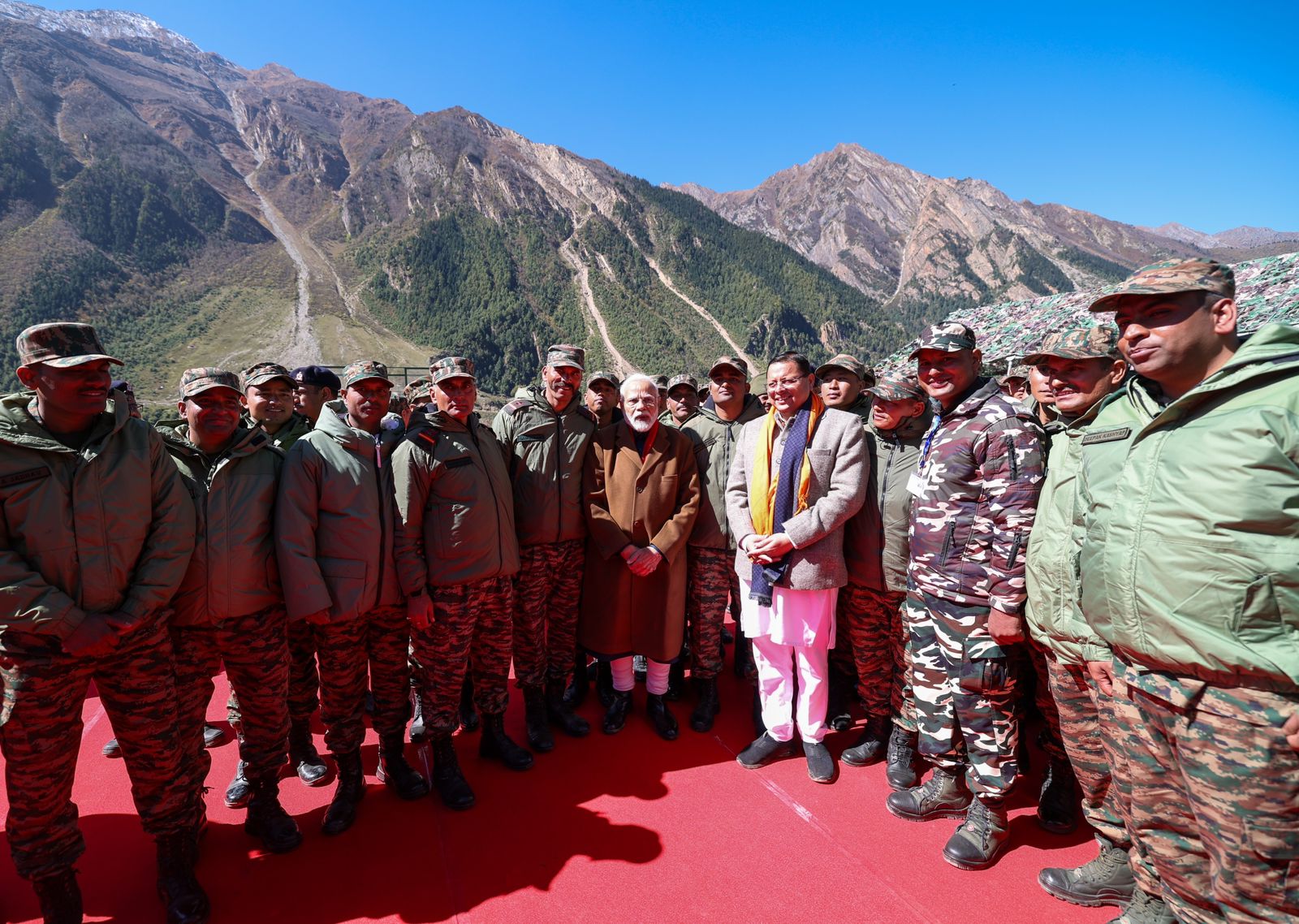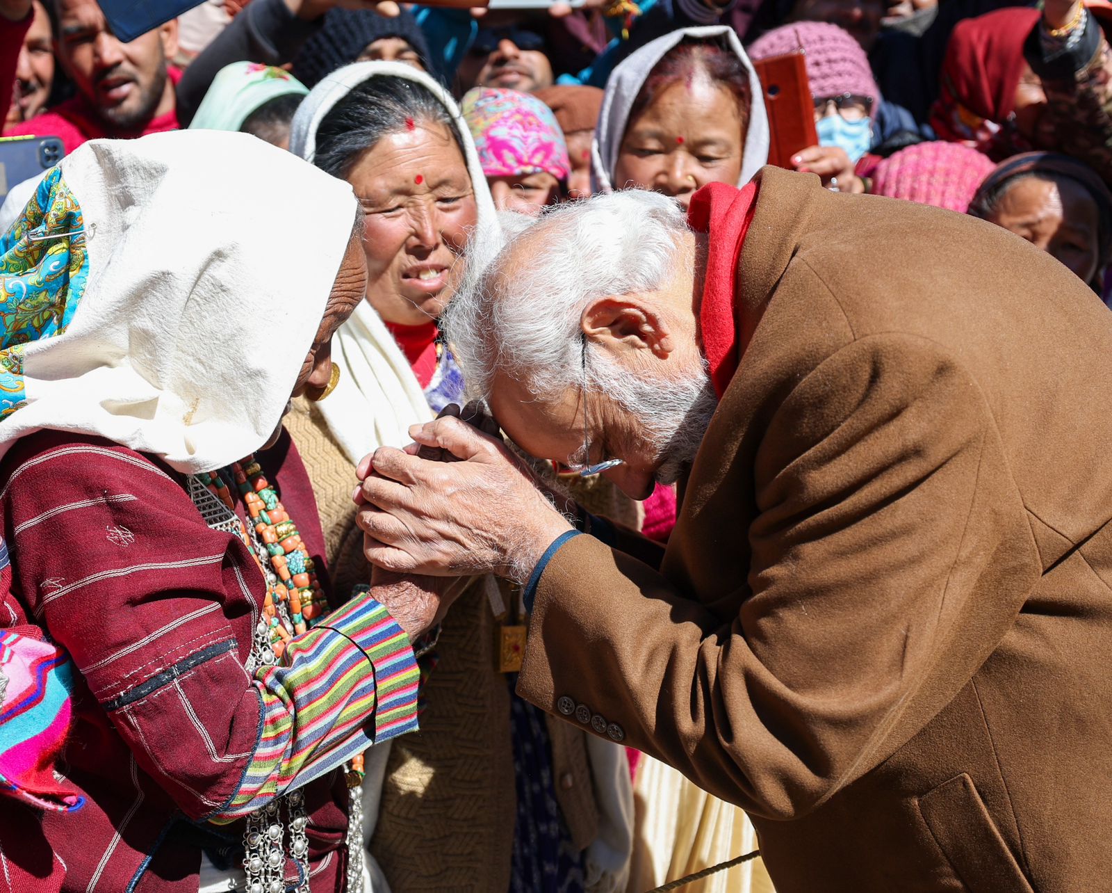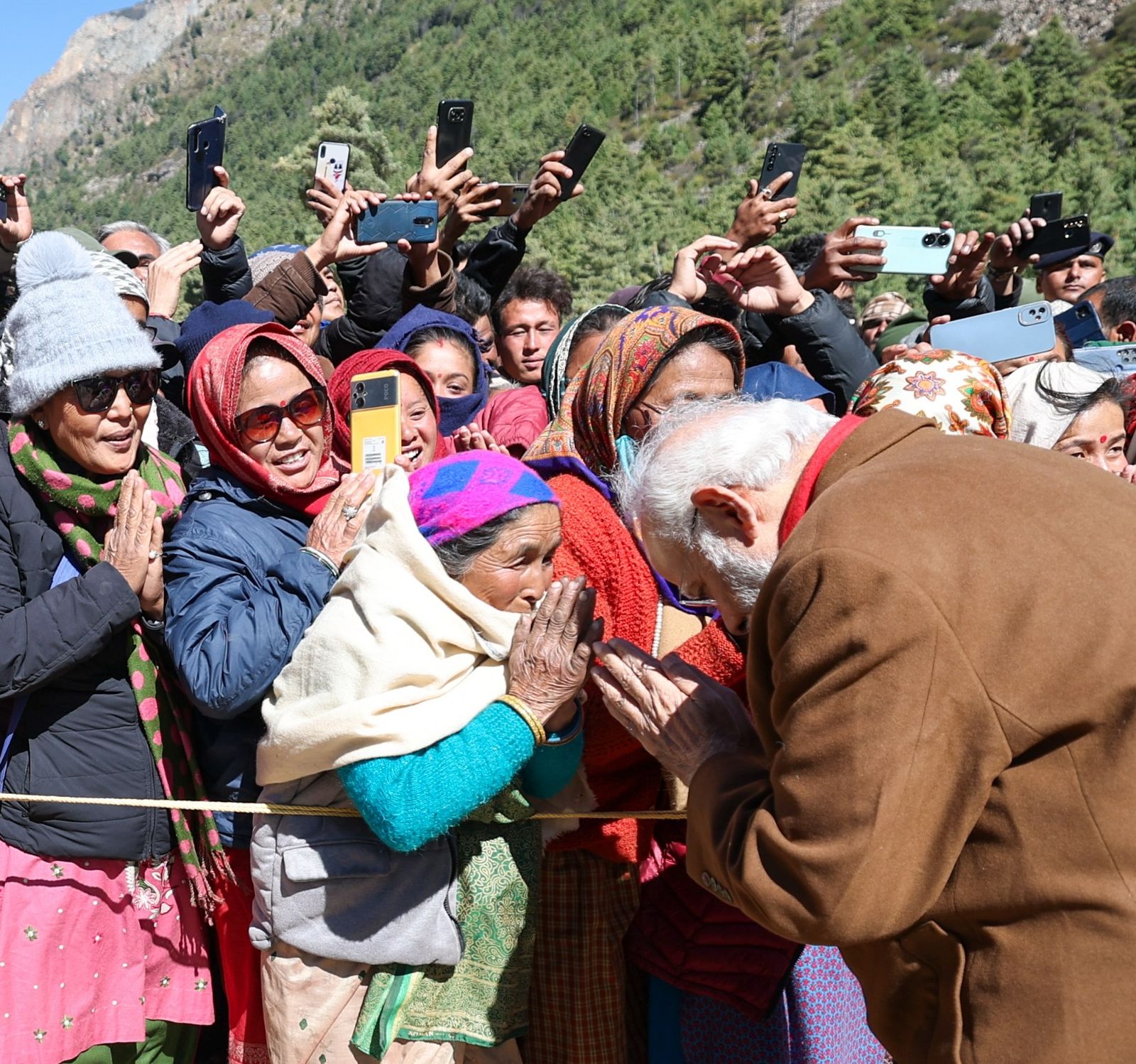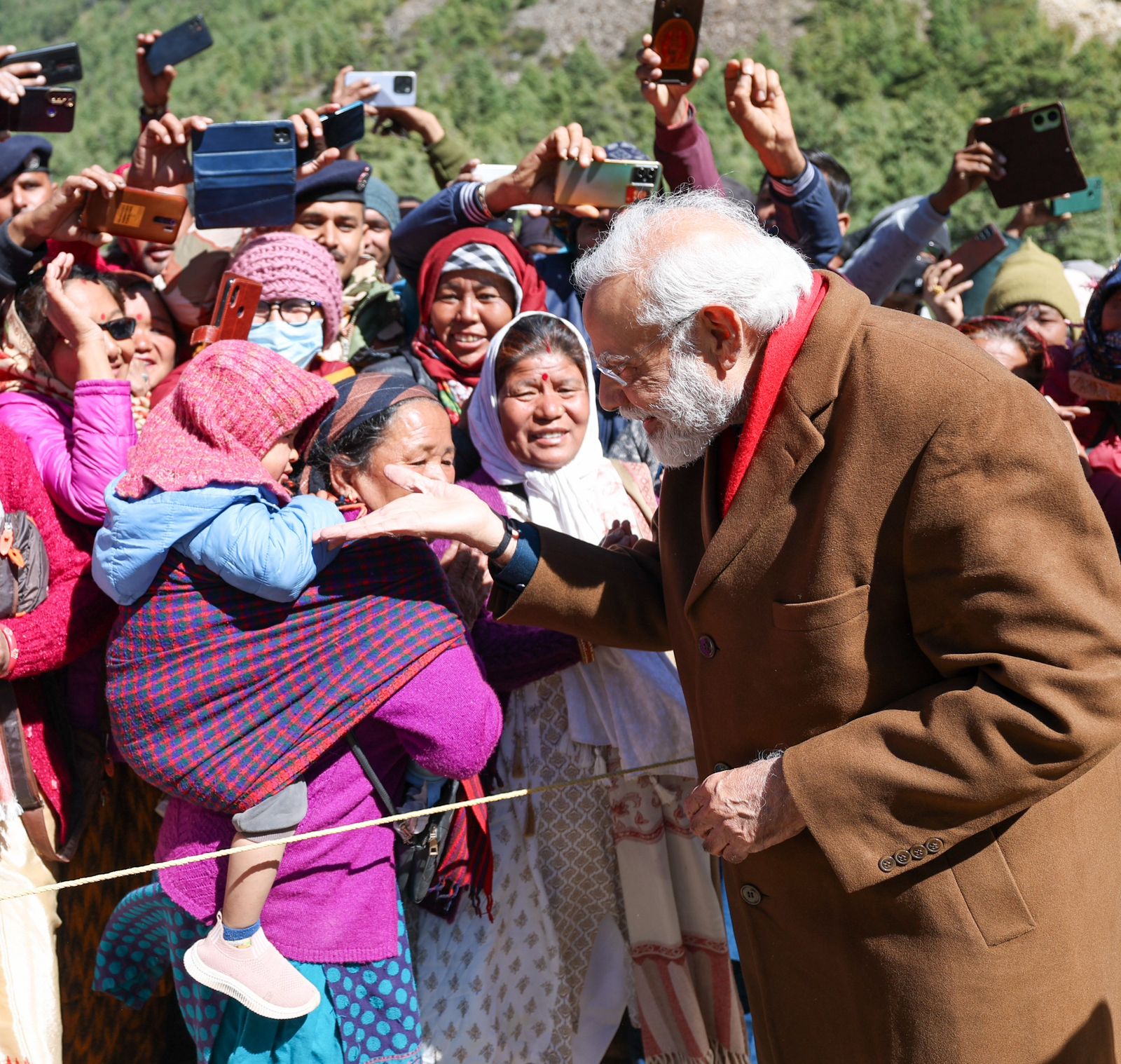 पिथौरागढ़ : प्रधानमंत्री नरेंद्र मोदी आज उत्तराखंड के दौरे पर है। पीएम मोदी सुबह-सुबह पिथौरागढ़ पहुंचे। प्रधानमंत्री नरेंद्र मोदी ने पार्वती कुंड में पूजा अर्चना की। पीएम मोदी का ये दौरा काफी खास है। पिथौरागढ़ से ही प्रधानमंत्री उत्तराखंड को अरबों रुपये की सौगात देंगे। कई योजनाओं का शिलान्यास करेंगे। प्रधानमंत्री नरेंद्र मोदी सेना के जवानों से मुलाकात की। प्रधानमंत्री नरेंद्र मोदी ने गुंजी गांव में लोगों से मिलने के बाद भारतीय सेना, आईटीबीपी और बीआरओ कर्मियों से बातचीत की। इस मुलाकात की तस्वीर खुद मुख्यमंत्री पुष्कर सिंह धामी ने साझा की। इससे पहले प्रधानमंत्री नरेंद्र मोदी ने भारतीय सीमा से सटे गुंजी गांव में लोगों से मुलाकात की। छोटे-छोटे बच्चों से लेकर महिलाओं से प्रधानमंत्री नरेंद्र मोदी ने बातचीत की। इस दौरान एक बुजुर्ग महिला ने प्रधानमंत्री नरेंद्र मोदी के सिर पर हाथ फेरते हुए उन्हें आशीर्वाद दिया।