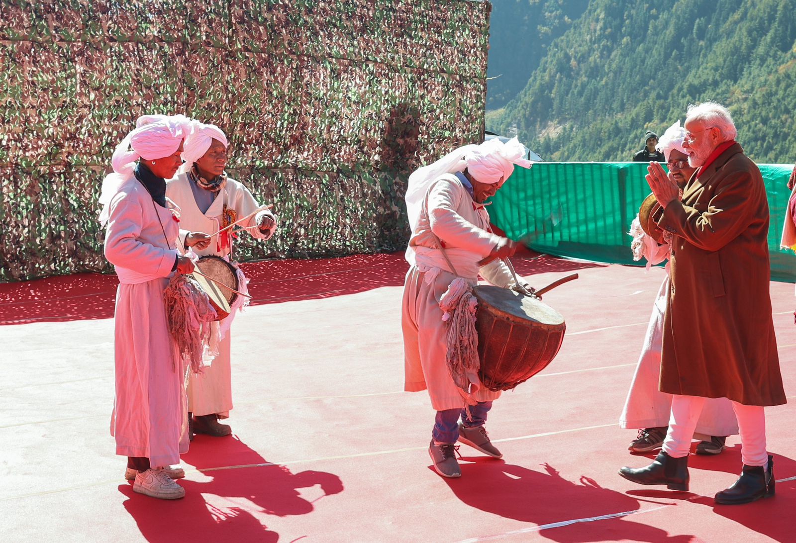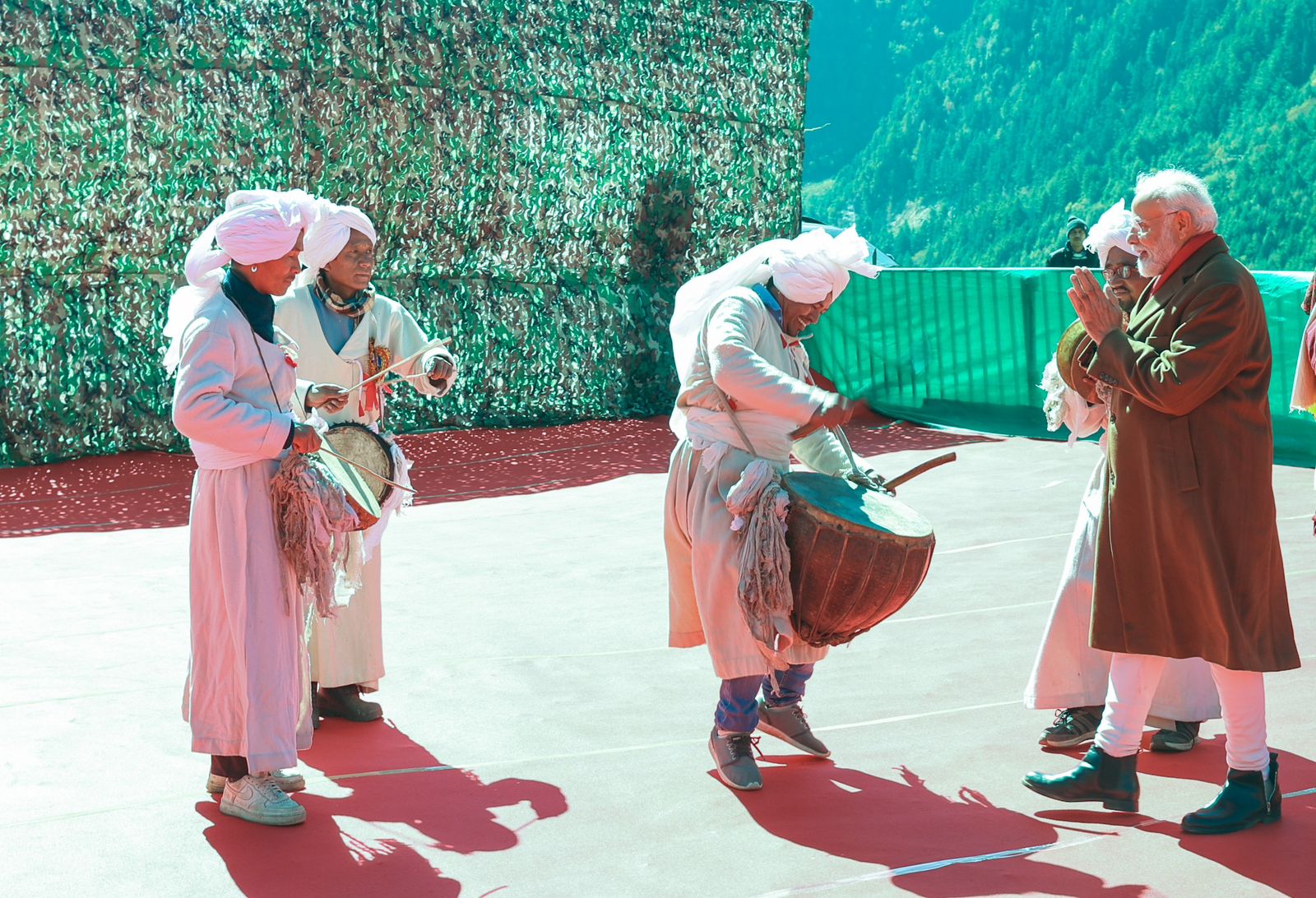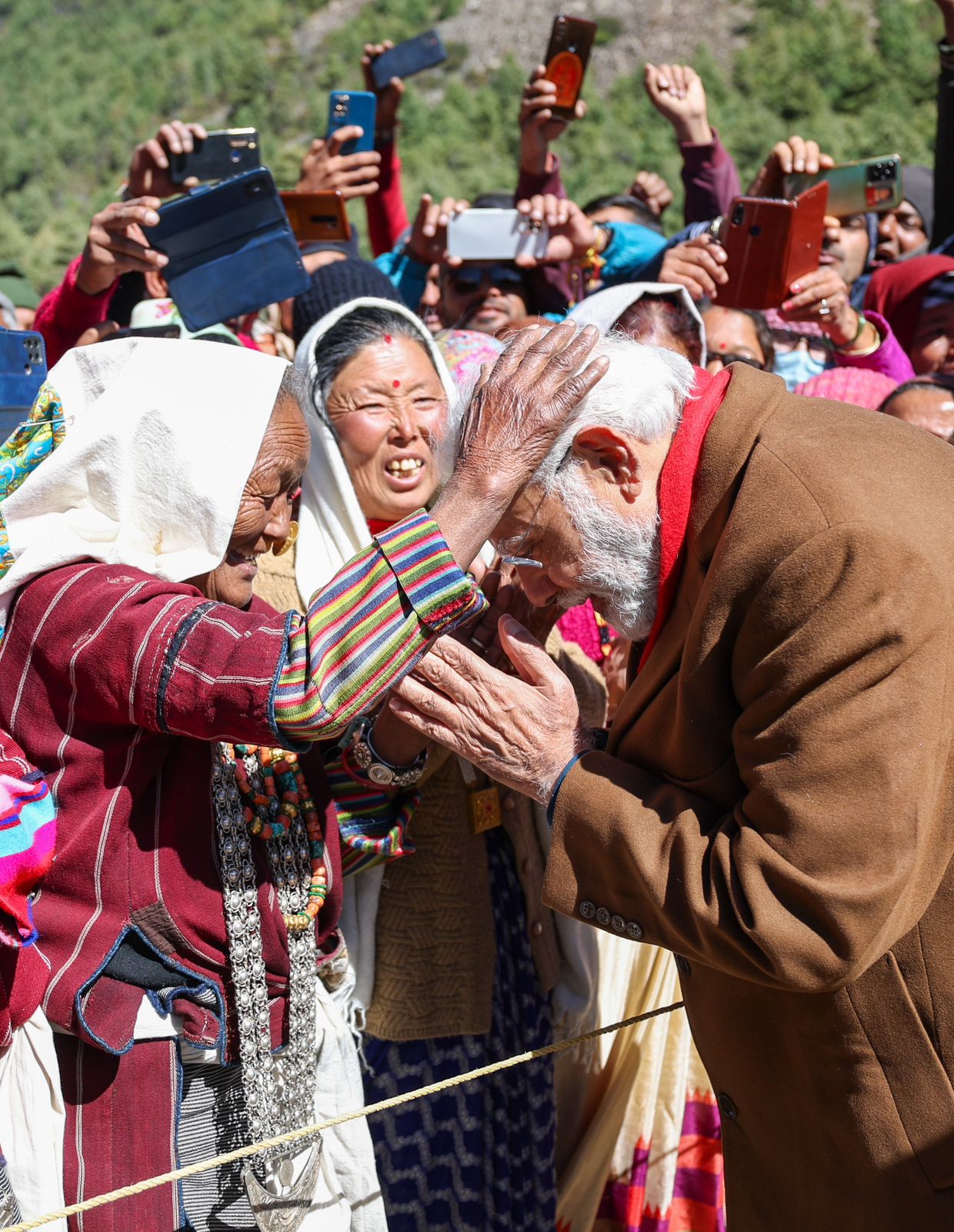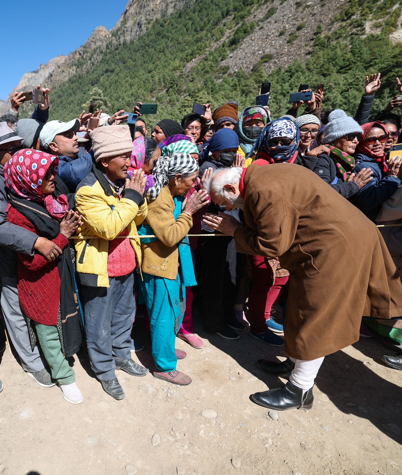 पिथौरागढ़ : प्रधानमंत्री नरेंद्र मोदी आज उत्तराखंड के दौरे पर है। पीएम मोदी सुबह-सुबह पिथौरागढ़ पहुंचे। प्रधानमंत्री नरेंद्र मोदी ने पार्वती कुंड में पूजा अर्चना की। पीएम मोदी का ये दौरा काफी खास है। पिथौरागढ़ से ही प्रधानमंत्री उत्तराखंड को अरबों रुपये की सौगात देंगे। कई योजनाओं का शिलान्यास करेंगे। प्रधानमंत्री नरेंद्र मोदी सेना के जवानों से मुलाकात की। प्रधानमंत्री नरेंद्र मोदी ने गुंजी गांव में लोगों से मिलने के बाद भारतीय सेना, आईटीबीपी और बीआरओ कर्मियों से बातचीत की। इस मुलाकात की तस्वीर खुद मुख्यमंत्री पुष्कर सिंह धामी ने साझा की। इससे पहले प्रधानमंत्री नरेंद्र मोदी ने भारतीय सीमा से सटे गुंजी गांव में लोगों से मुलाकात की। छोटे-छोटे बच्चों से लेकर महिलाओं से प्रधानमंत्री नरेंद्र मोदी ने बातचीत की। इस दौरान एक बुजुर्ग महिला ने प्रधानमंत्री नरेंद्र मोदी के सिर पर हाथ फेरते हुए उन्हें आशीर्वाद दिया।