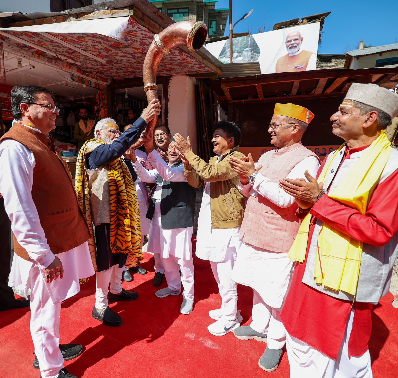 अल्मोड़ा : प्रधानमंत्री नरेंद्र मोदी ने आज उत्तराखंड के पांचवें धाम के रूप में प्रसिद्ध जागेश्वर धाम पहुंचकर पूजा अर्चना की तथा देश वासियों की सुख समृद्धि की कामना की। प्रधानमंत्री नरेंद्र मोदी आज 11:40 बजे शौकियाथल पहुंचे । इसके पश्चात प्रधानमंत्री नरेंद्र मोदी सड़क मार्ग से जागेश्वर धाम पहुंचे। 124 मंदिरों के समूह जागेश्वर धाम में उन्होंने सर्वप्रथम जागेश्वर गर्भगृह में करीब 7 मिनट तक पूजा कर बाबा जागेश्वर के दर्शन किए। इसके पश्चात पुष्टिमता, महामृत्युंजय तथा केदारनाथ में पूजा अर्चना की। इसके पश्चात मंदिर परिसर की परिक्रमा करते हुए अर्धनारेश्वर वृक्ष का अवलोकन किया। इसके पश्चात मुख्यमंत्री पुष्कर सिंह धामी ने प्रधानमंत्री नरेंद्र मोदी को तांबे से बना वाद्य यंत्र तुरही, ताम्र जागेश्वर तथा डमरू उपहार स्वरूप भेंट किया। फ्लीट मार्ग में प्रधानमंत्री ने स्थानीय लोगों का कार से उतरकर अभिवादन स्वीकार किया।