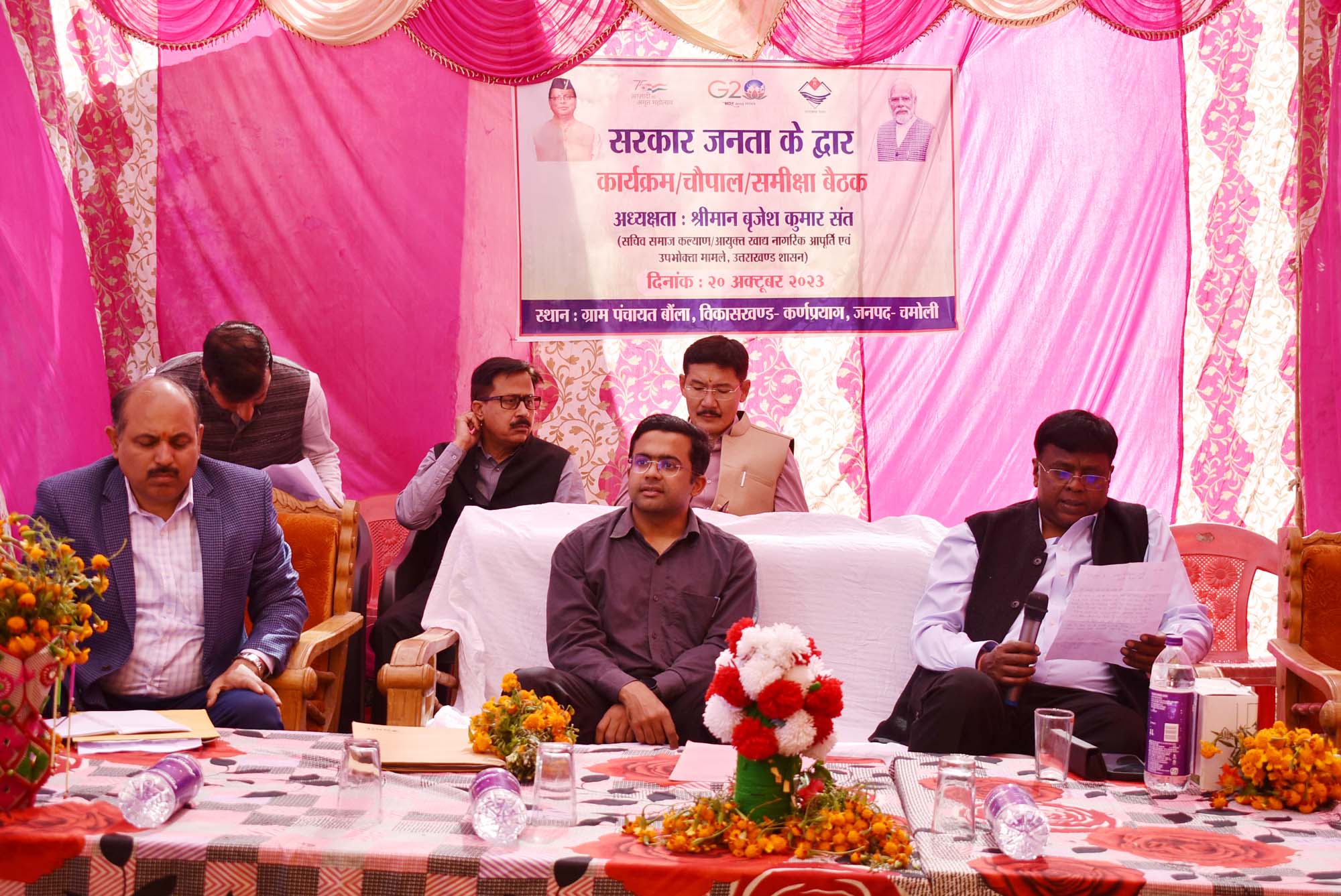 चमोली : ‘सरकार जनता के द्वार’ कार्यक्रम के तहत सचिव, समाज कल्याण, आयुक्त खाद्य नागरिक आपूर्ति एवं उपभोक्ता मामले, उत्तराखंड शासन बृजेश कुमार संत शुक्रवार को जनपद चमोली पहुंचे। अपने एक दिवसीय भ्रमण के दौरान सचिव ने विकासखंड कर्णप्रयाग के अंतर्गत ग्राम पंचायत बौला में विभिन्न विकास योजनाओं का निरीक्षण करने के साथ ही गांव में चौपाल आयोजित कर जन समस्याएं सुनी। प्रदेश सचिव के ग्राम पंचायत बौला पहुंचने पर ग्रामीणों ने पुष्प गुच्छ एवं स्थानीय उत्पादों की टोकरी भेंट कर उनका स्वागत किया।