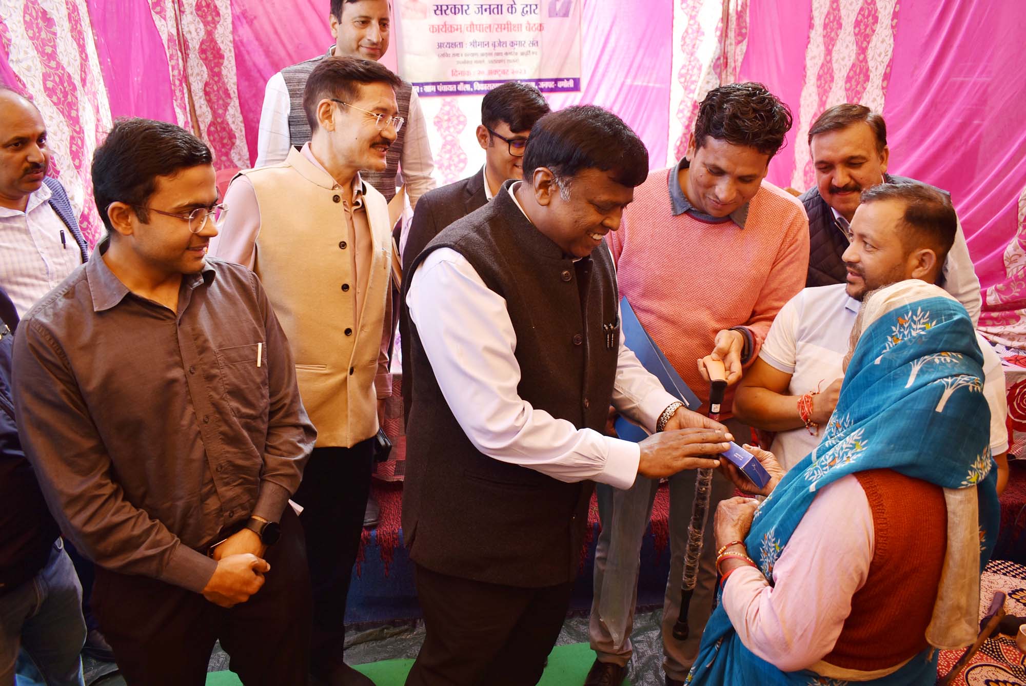 समाज कल्याण एवं खाद्य नागरिक आपूर्ति सचिव ने कहा कि क्षेत्र के विकास से जुड़े मुद्दों और ग्रामीणों की समस्याओं को शासन स्तर पर संबंधित विभागों को संदर्भित कर उनका निस्तारण कराया जाएगा। उन्होंने जिले स्तर की समस्याओं का भी प्राथमिकता पर निस्तारण करने के निर्देश अधिकारियों को दिए। इस दौरान उन्होंने शिविर में लगे स्टालों का निरीक्षण किया और ग्राम बौला निवासी एक बुजुर्ग महिला को कान सुनने की मशीन एवं छडी भी दी।