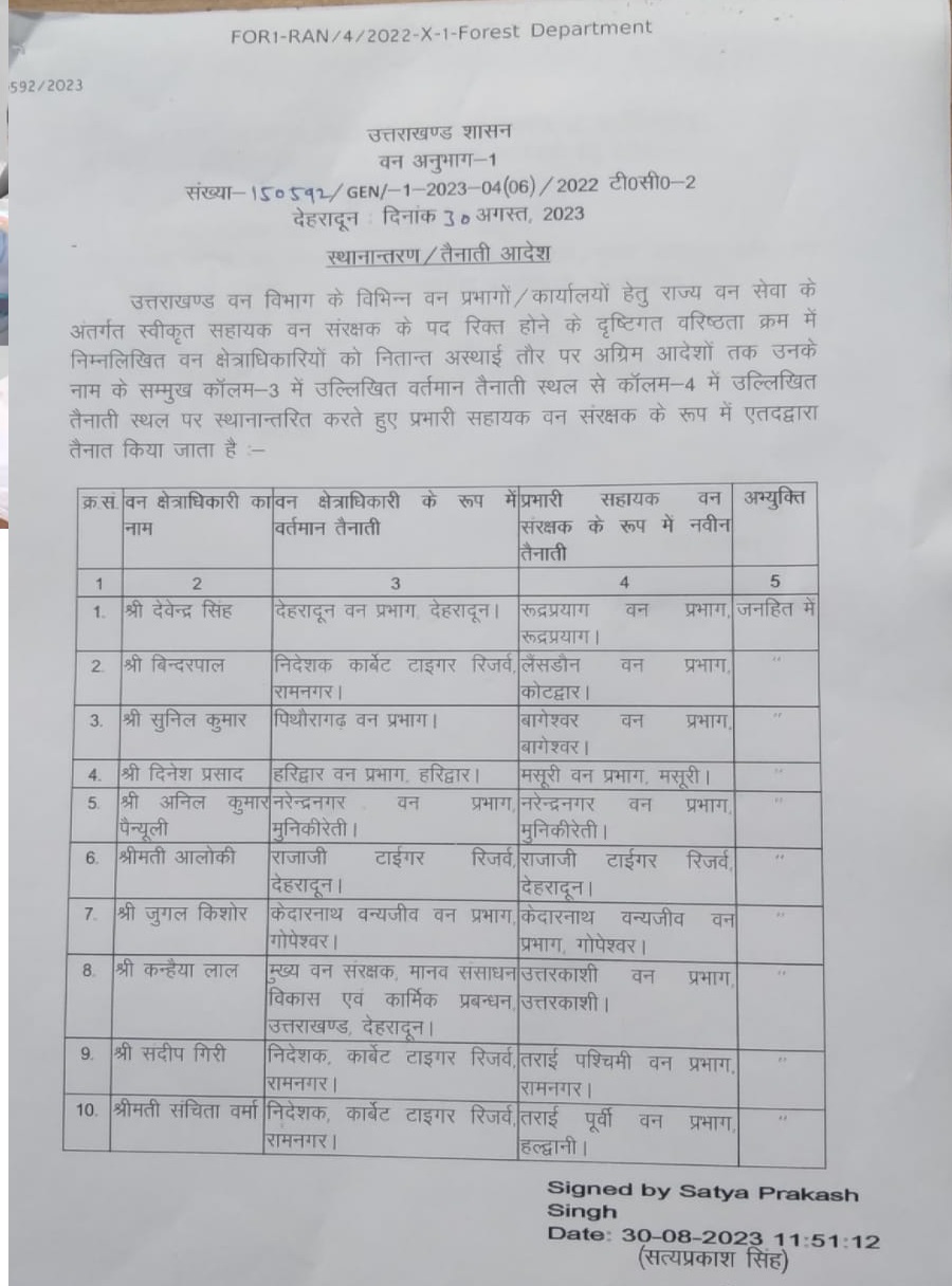 उत्तराखंड : वन विभाग में वन क्षेत्राधिकारियों के प्रमोशन और ट्रांसफर, यहां देखें लिस्ट